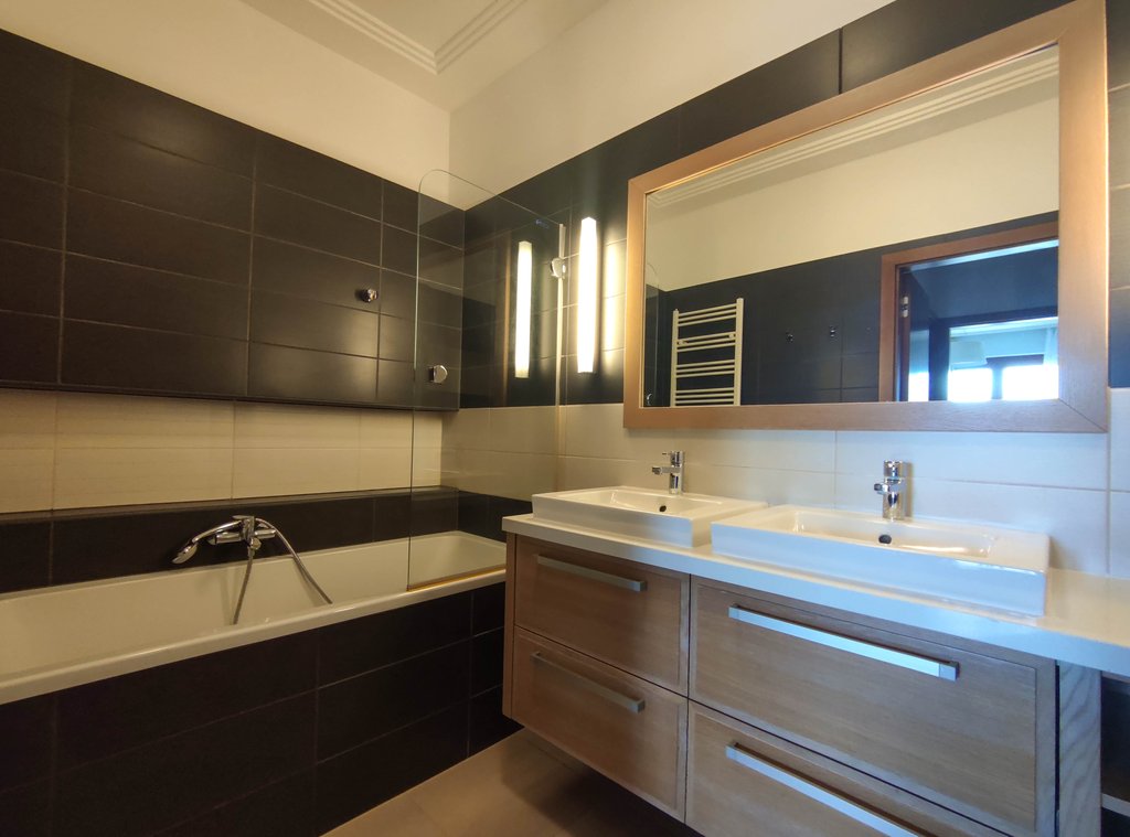 A XII. kerületben, Virányoson, lakóparki környezetben kiadó egy 97 négyzetméteres, nagyon jó beosztású, panorámás, erkélyes első emeleti lakás. Az ingatlanban egy tágas előszoba, nappali, étkező és gépesített konyha található, továbbá kettő hálószoba, kádas (zuhany paravánnal) fürdőszoba, vendégmosdó, háztartási helyiség (mosó-és szárítógéppel) és gardrób. Légkondicionálóval és riasztóval felszerelt a lakás. Rengeteg tárolási lehetőség van, köszönhetően a praktikus és igényesen kivitelezett beépített szekrényeknek és polcoknak. Az ingatlan ablakaiból gyönyörű kilátás nyílik az ősfákkal teli, ápolt kertre. A lakáshoz tartozik 1 autóbeálló a mélygarázsban, valamint 1 külső parkolóhely a zárt kertben és egy kb. 6 m2-es tároló is. Az ingatlan azonnal költözhető.