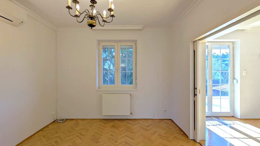 300 sqm, 3-storey detached house is for rent in the 2/a District with a nice garden, near to international schools and very close to the tram station and shopping malls. The panoramic home consists of a spacious living room with fireplace, four bedrooms, a dining room, library room, three bathrooms (two with a bathtub and one with a shower), fitness room and huge storage places. The alarm protected house has a sauna, a wine cellar and a wine bar. The ground floor offers a parking place for 2 cars in the building’s garage with heated driving path. American and French International Schools and supermarkets can be reached within 5 minutes by car.