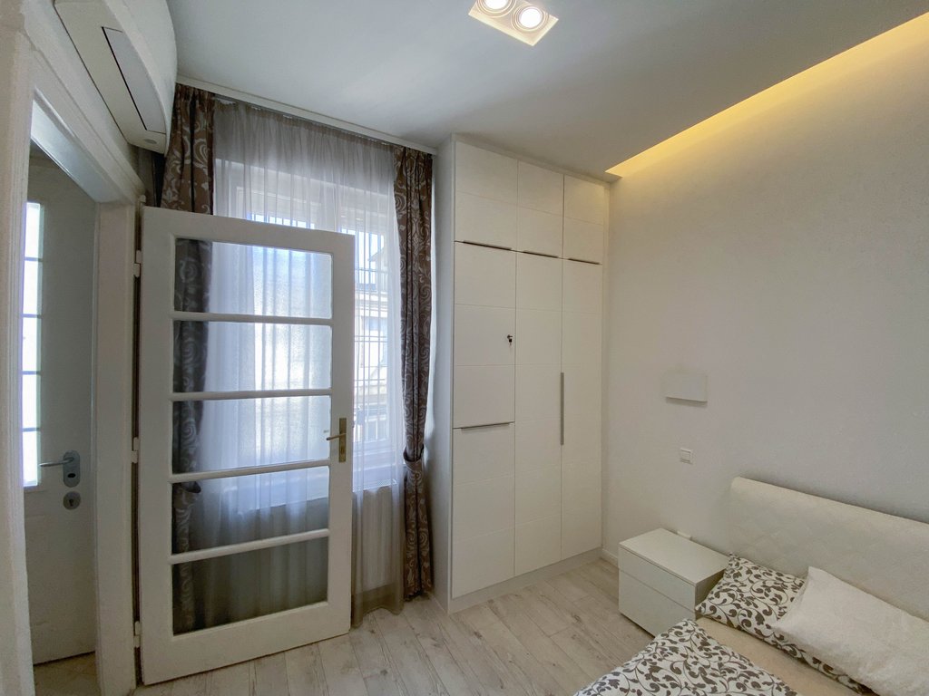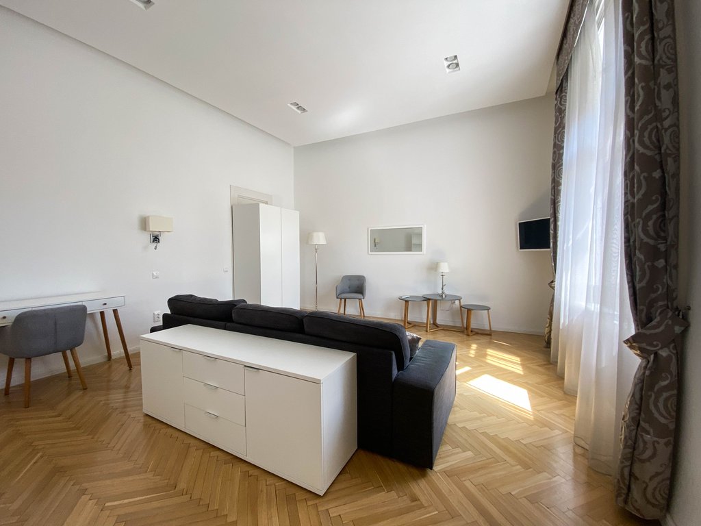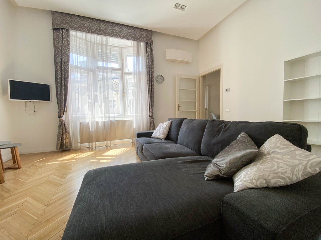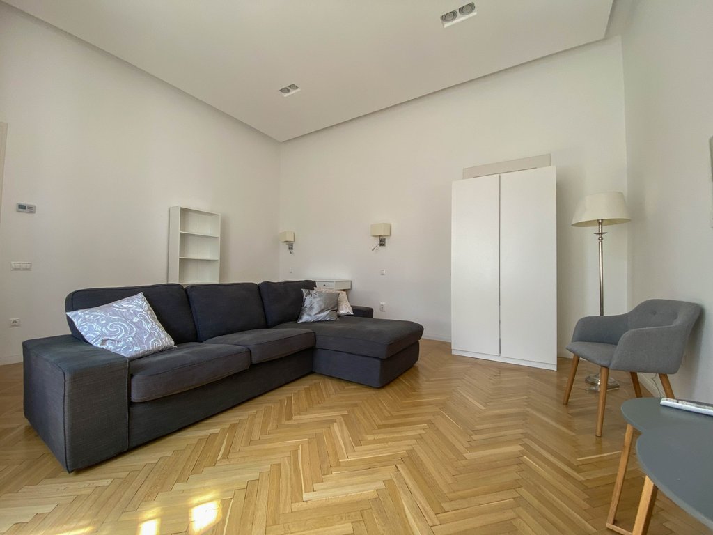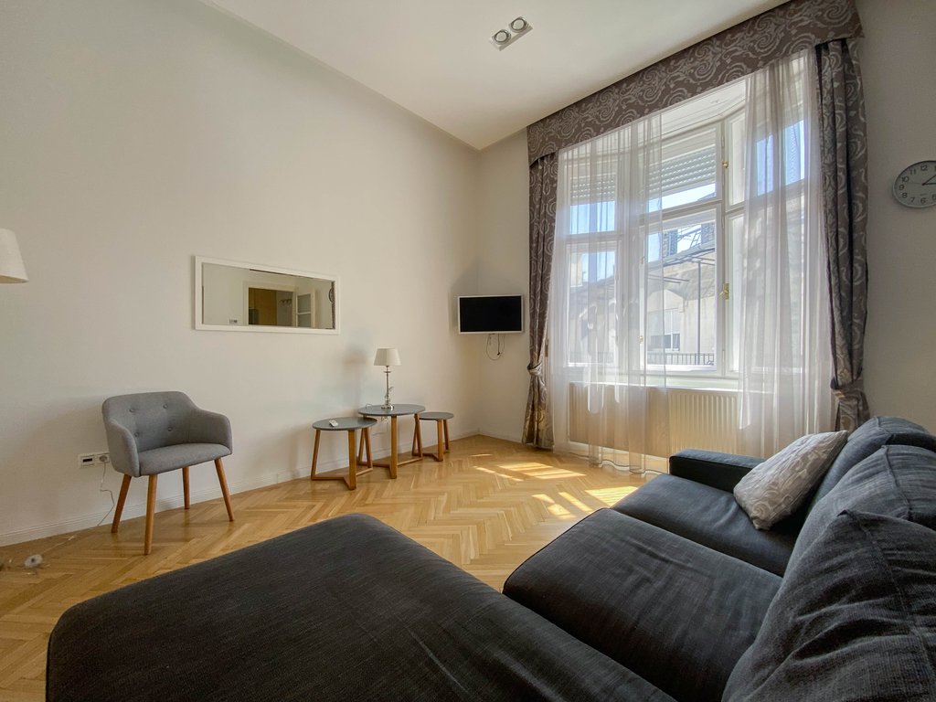 Cozy apartment is for rent in the neighborhood of Kálvin Square, in the 5th district. The 4th floor apartment has a fully equipped kitchen and dining area, a spacious living room, a bedroom, a bathroom with shower and a storage room. The apartment is fully furnished, air-conditioned, an excellent choice for couples and singles. The building also has an elevator, and there are many restaurants and cafes in the area.