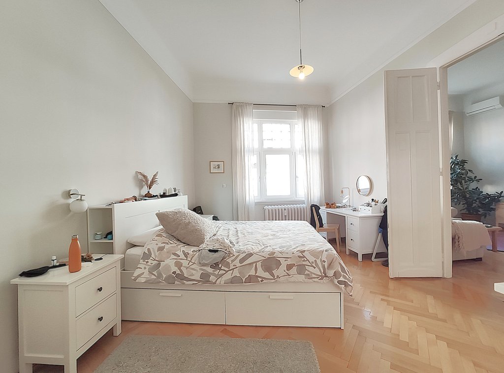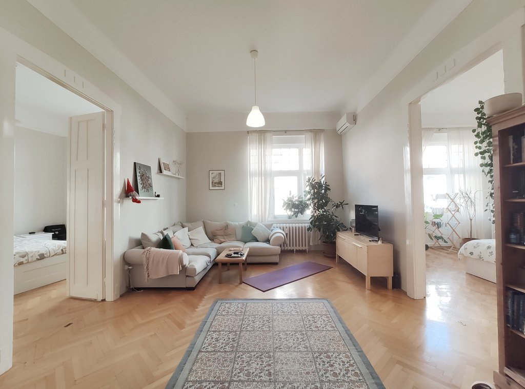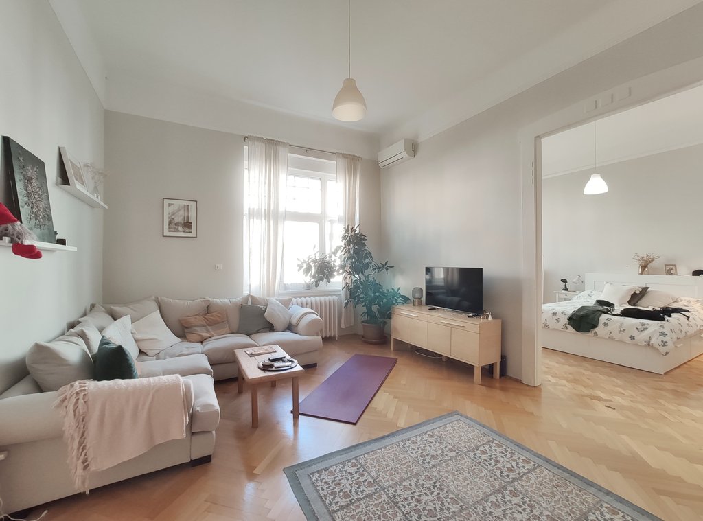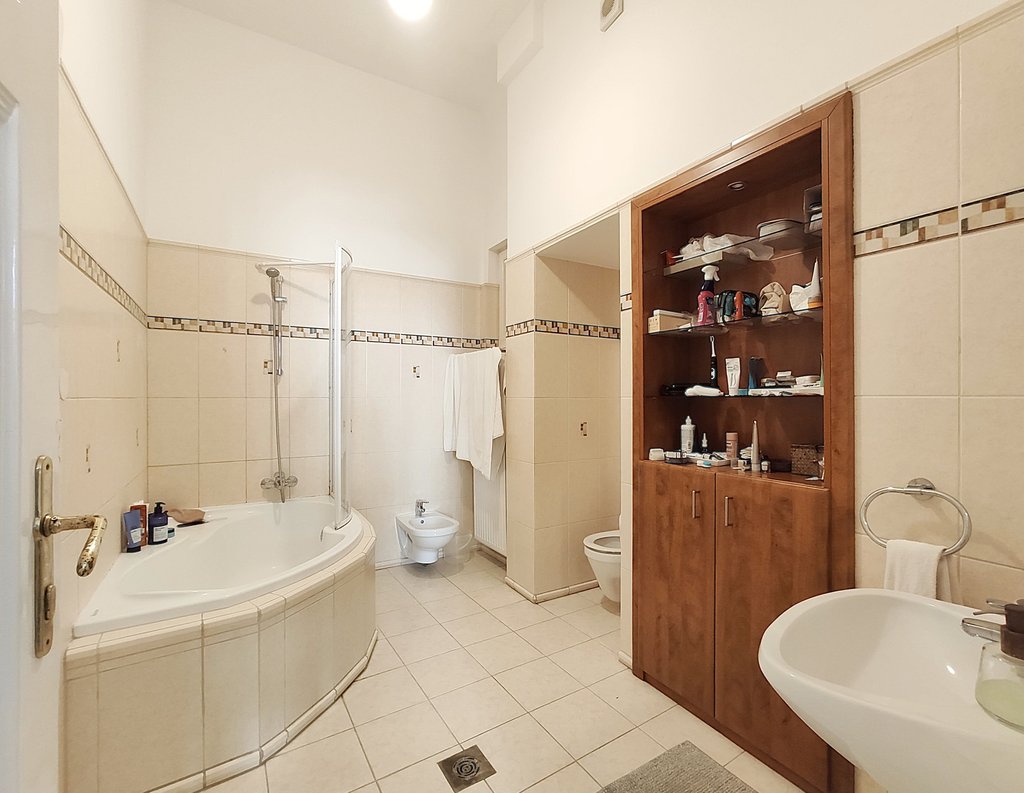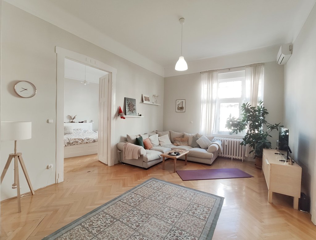 In the 5th District, close to Parliament, in the neighbourhood of the antique shops, a 3rd floor apartment is for rent. The 90 sqm property consists of a large, separate kitchen, a sunny living room with dining room, two bedrooms, a bathroom with a bathtub, a guest toilet and a pantry. The flat is air-conditioned. The building has an elevator. This apartment can be ideal home for families or couples. Jászai Mari square, the Danube river and Margaret island can be reached on foot.