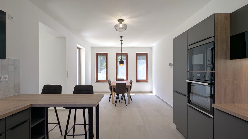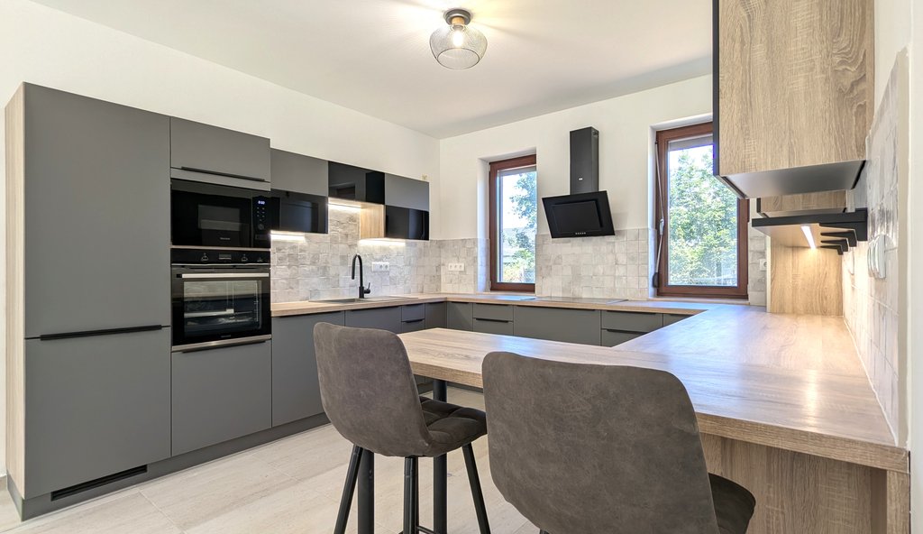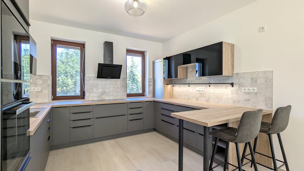 This tastefully designed 237sqm family home is for rent with a beautifully maintained 1,198 sqm garden. The house features three separate bedrooms, each with its own private and comfortable bathroom, ensuring a high level of privacy for every family member. The master bedroom includes a fully furnished walk-in wardrobe, offering excellent storage space. A separate study provides an ideal environment for working from home. The modern kitchen is fully equipped with all the essential appliances to meet every culinary need. The property also includes a practical laundry room with connections for two washing machines, and from here, a pantry offers additional storage options. The entrance hall is fully furnished, creating a welcoming and tidy first impression. A two-car garage provides covered parking, and the house is equipped with modern solar panels, contributing to energy efficiency and reduced utility costs. This thoughtfully designed home, with its modern amenities and practical layout, is an ideal choice for those seeking a comfortable, functional, and energy-efficient living space in a peaceful environment.