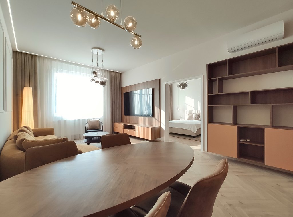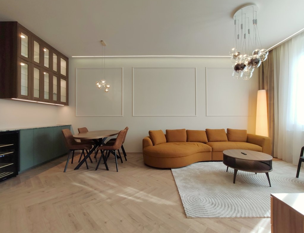 A freshly and fully renovated, premium quality, 90 m², 3rd floor apartment awaits its new owner at the beginning of Bimbó út! The property features a living room with an open-style kitchen, two bedrooms, two bathrooms and a guest toilet. The master bedroom has its own en-suite bathroom with a shower, while the second bathroom has a bathtub. Only quality materials and modern solutions were used during the renovation. Minitech underfloor heating is installed in the kitchen, hallway, bathrooms and toilet. The three-layer wooden windows and doors and Bugnatese faucets reflect elegance and luxury. The bright spaces and homely interior of the property create a perfect balance with a modern and comfortable lifestyle. The apartment is air-conditioned: there are 3 indoor and 2 outdoor units. The kitchen furniture is partly IKEA, partly made of custom-made elements, equipped with AEG appliances. The common cost is 47,000 HUF, which includes heating and water, water and gas are calculated on a square meter basis. Parking is available in the building next to the house for 57, 150 HUF/month. The apartment is a few minutes walk from Mechwart Park, Margit Boulevard, Mammut Shopping Center and public transportation. This apartment is an ideal home or long-term investment, it can easily be rented out for around 2000 EUR/month. The built-in furniture shown in the pictures is part of the purchase price, the rest of the furniture is a matter of negotiation.