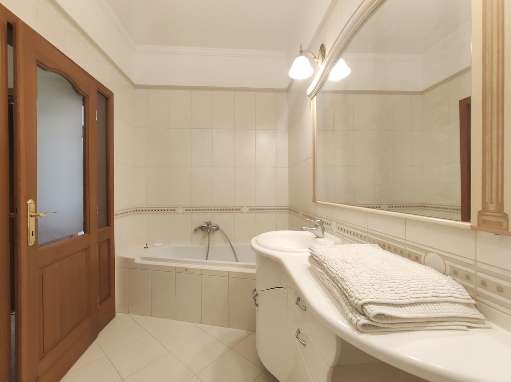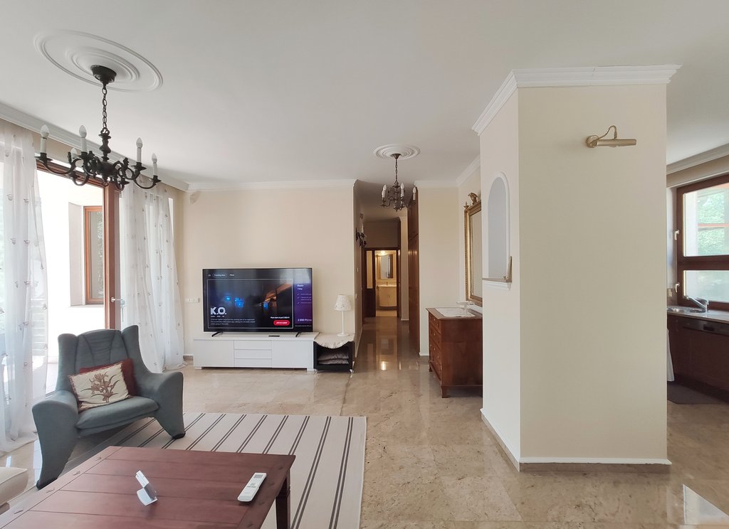 Unique, very elegant and stylish apartment in the most quiet part of the Eurodomb condominium, with view to the forest and rocks is for rent. The 1st floor flat consists of an open plan kitchen with dining area and living room, 2 bedrooms, a bathroom with bathtub and shower, a guest toilet and a huge terrace. The air-conditioned apartment is located in a very safe condominium, with 24 h security service.