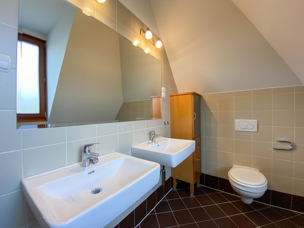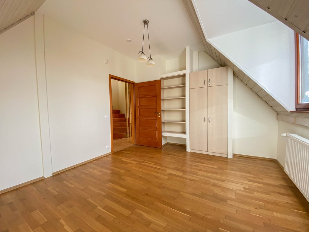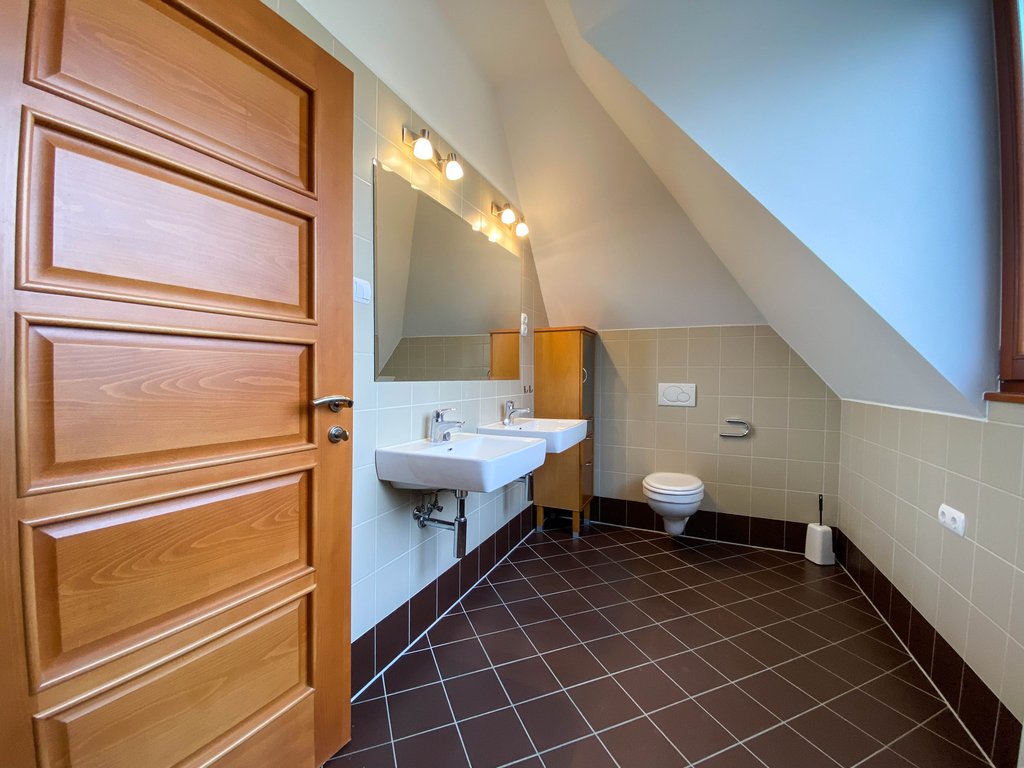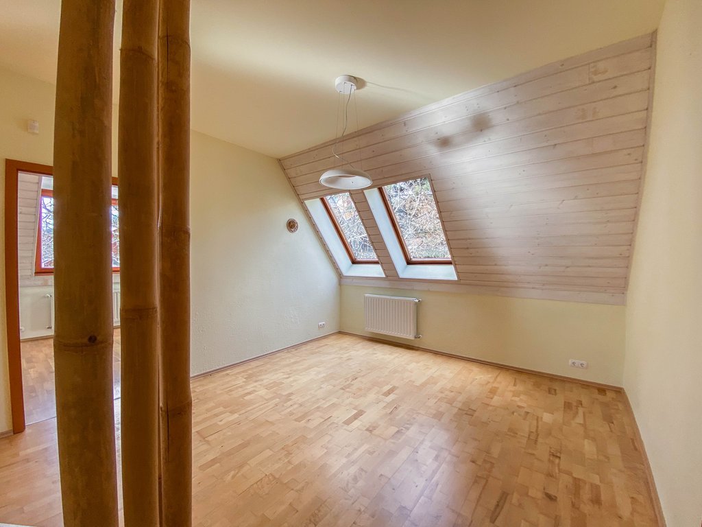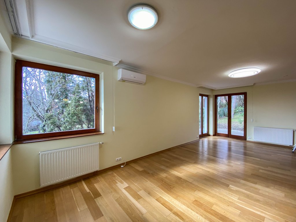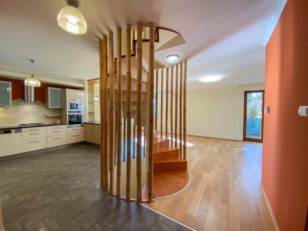 In the neighborhood of a nature conservation area, a semi-detached house with excellent facilities is for rent in the 12th District. On the entrance level of the house there is a living room with an open plan kitchen, which is connected to a terrace facing the street and the garden, and a guest toilet. On the first floor there are 3 nice bedrooms, a wardrobe and a bathroom with a bathtub. On the top floor, there is an air-conditioned room with beautiful view to the forest and the city. On the basement level there is a hobby room, a Finnish sauna with a huge shower, a toilet, a laundry room and storage. The property is equipped with alarm system, 1 car can comfortably park in the yard of the house, another 2 cars can park right in front of the house. It has its own garden. Unfurnished, available immediately.