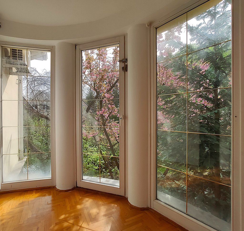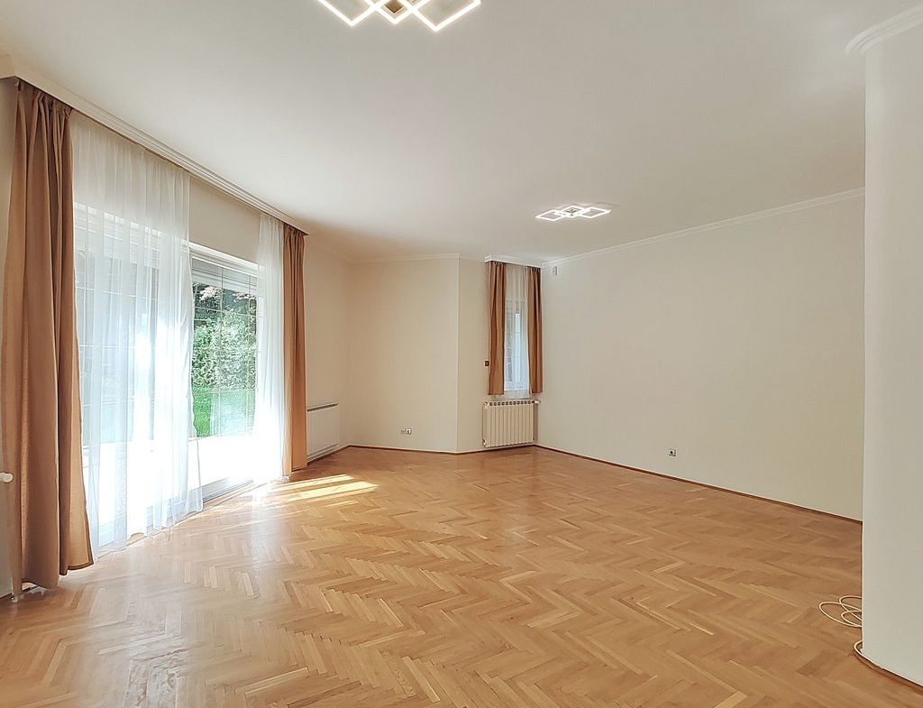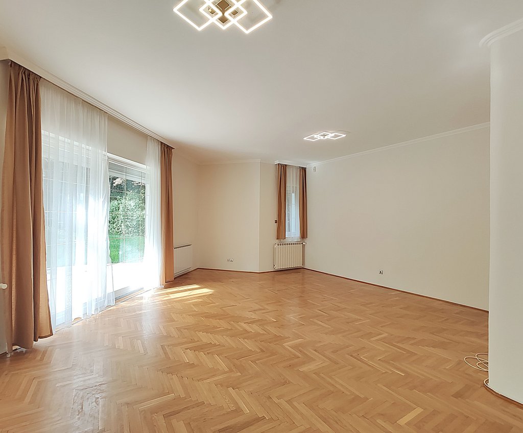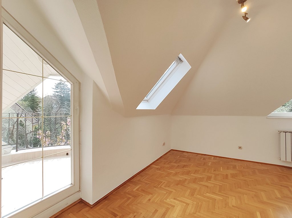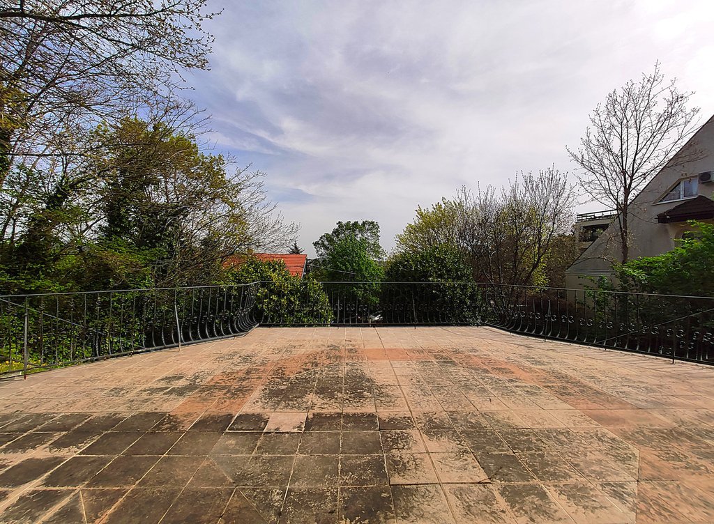 A well-maintained semi-detached house is for rent in the 12th District, Kútvölgy area. The house is in excellent condition, has spacious rooms, 4 bedrooms are air-conditioned and all the rooms are covered with parquet. On the entrance level is the kitchen with the dining area and living room and a guest toilet. The living room is connected with a terrace and the garden. Upstairs are 3 bedrooms and a huge bathroom with double sink, bathtub, shower and a terrace to be found. The top floor consists as well 3 bedrooms and a bathroom with bathtub, double sink, toilet and bidet and a terrace. The basement level accommodates a garage for 2 cars and several storages. There is a nice garden all around the house. Due to the location and number of the bedrooms, it can be ideal for bigger families.