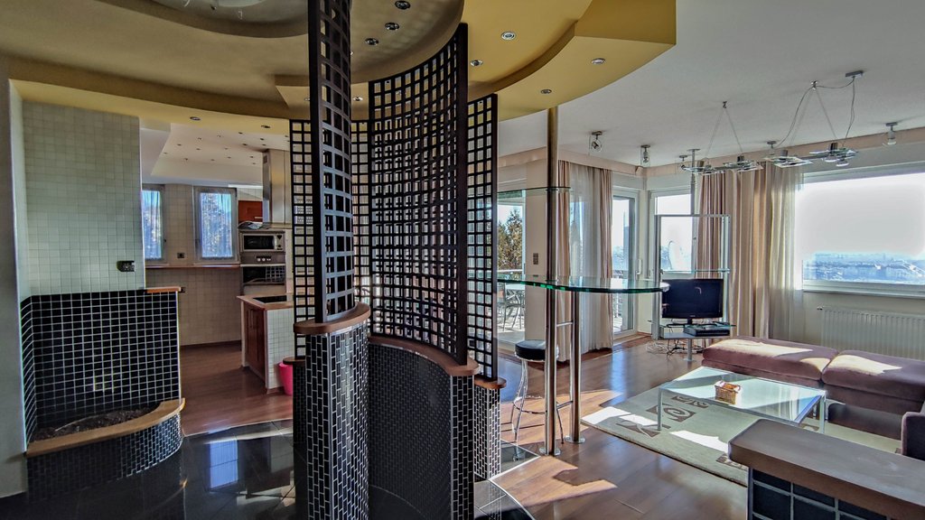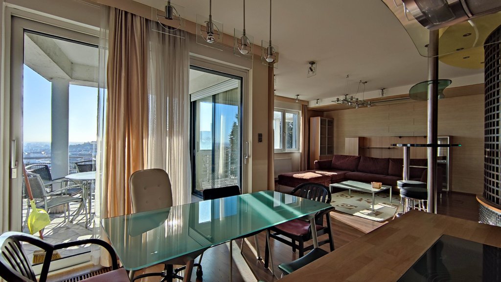 Modern 2nd floor apartment with amazing panorama is for rent Rosehill. Flat includes: 3 bedrooms, open plan fully equipped kitchen, dining room, 45sqm living room, 2 bathrooms, and last but not least a 26sqm terrace is also part of the property. Apartment includes many built-in cupboards. In addition, 2 parking places and 1 storage room also belong to the property. Extras: air-condition, alarm system, floor heating.