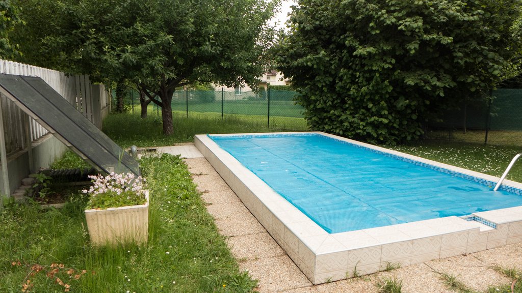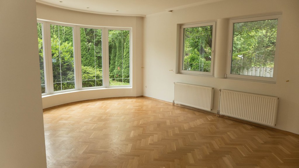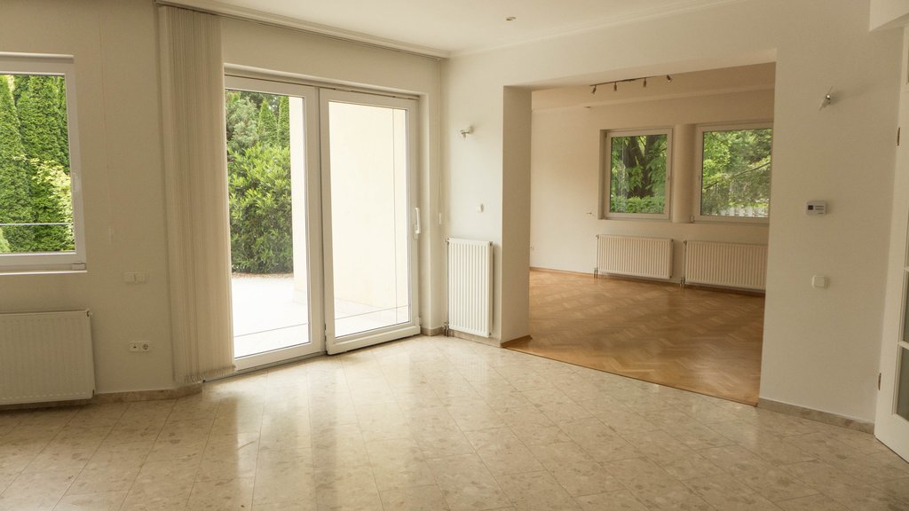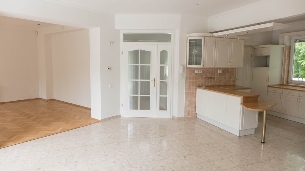 In II/A district (Budaliget) in a quiet street a 3 storey, unfurnished detached house is for rent with 3 bedrooms. On the entrance floor there is a bright living room from where you can get to the terrace and reach the well maintained rosy garden where a nice heated swimming pool can be found. Also on this floor there is a kitchen with spacious dining area, a study, pantry, a walk-in closet a bedroom and a bathroom (with a shower and with a bathtub too). The upper level is ideal area for children as it consists of another living room, three bedrooms, a walk-in closet and a bathroom with a shower. The basement of the air-conditioned property has a gym, a walk-in closet for winter clothes, a pantry, a storage, laundry and garage for two cars. (More parking places are also available in the garden.) American and French International Schools and supermarkets can be reached within 5 minutes by car.