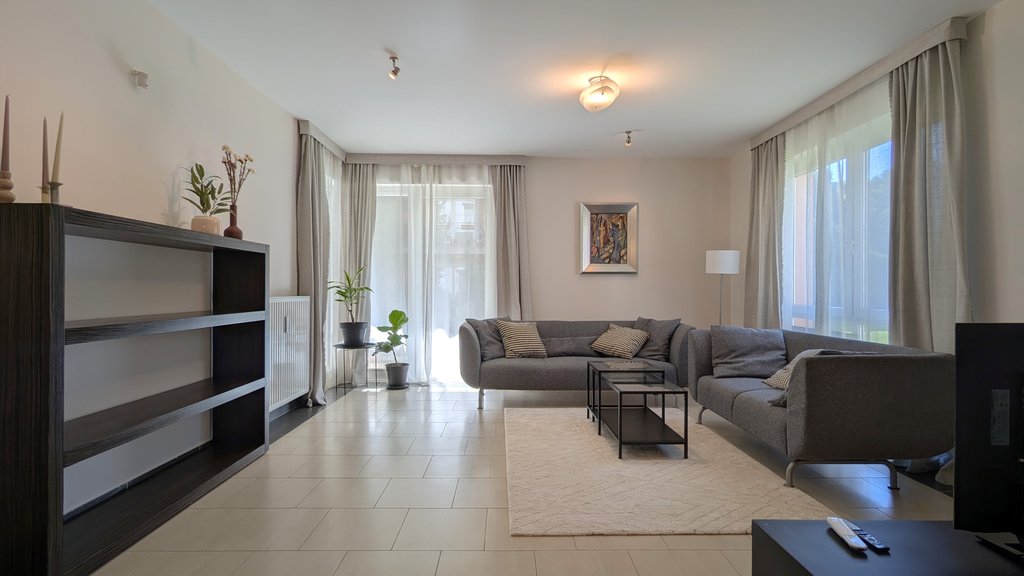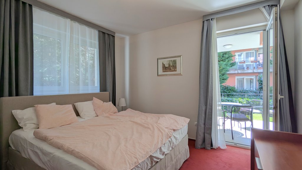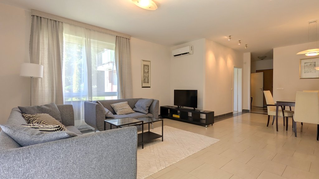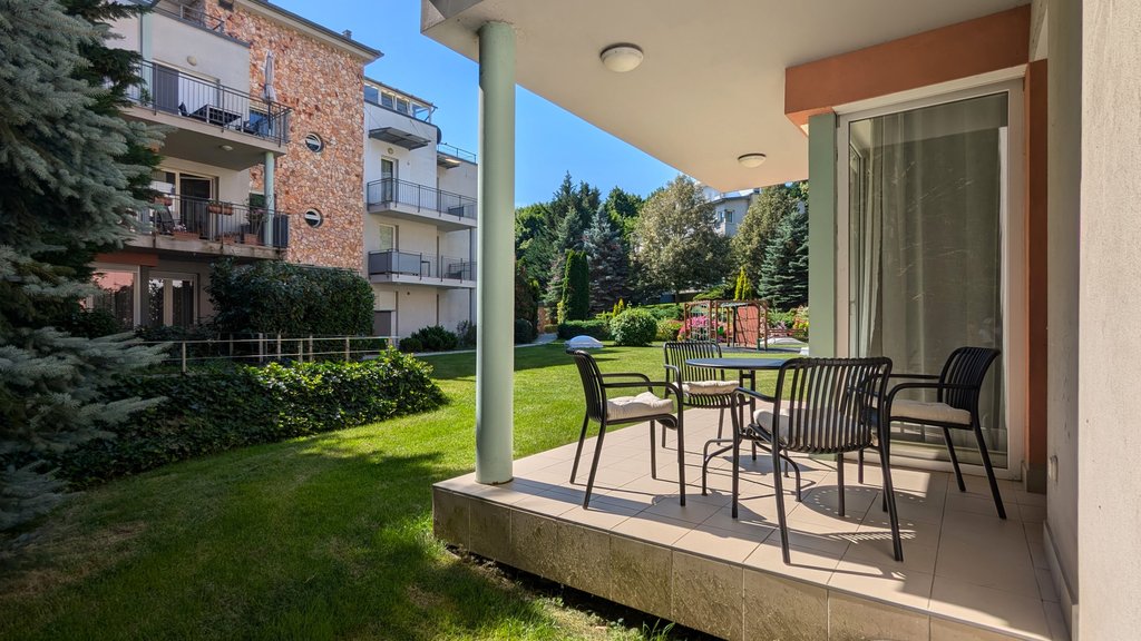 This apartment is located in one of the most popular and well equipped condominiums on the Buda side in the 2nd District (Kurucles quarter). This sunny apartment is situated on the ground floor and has 2 terraces.The condominium has several extra services: 24/7 reception service, sauna, common used garden with playground, etc.