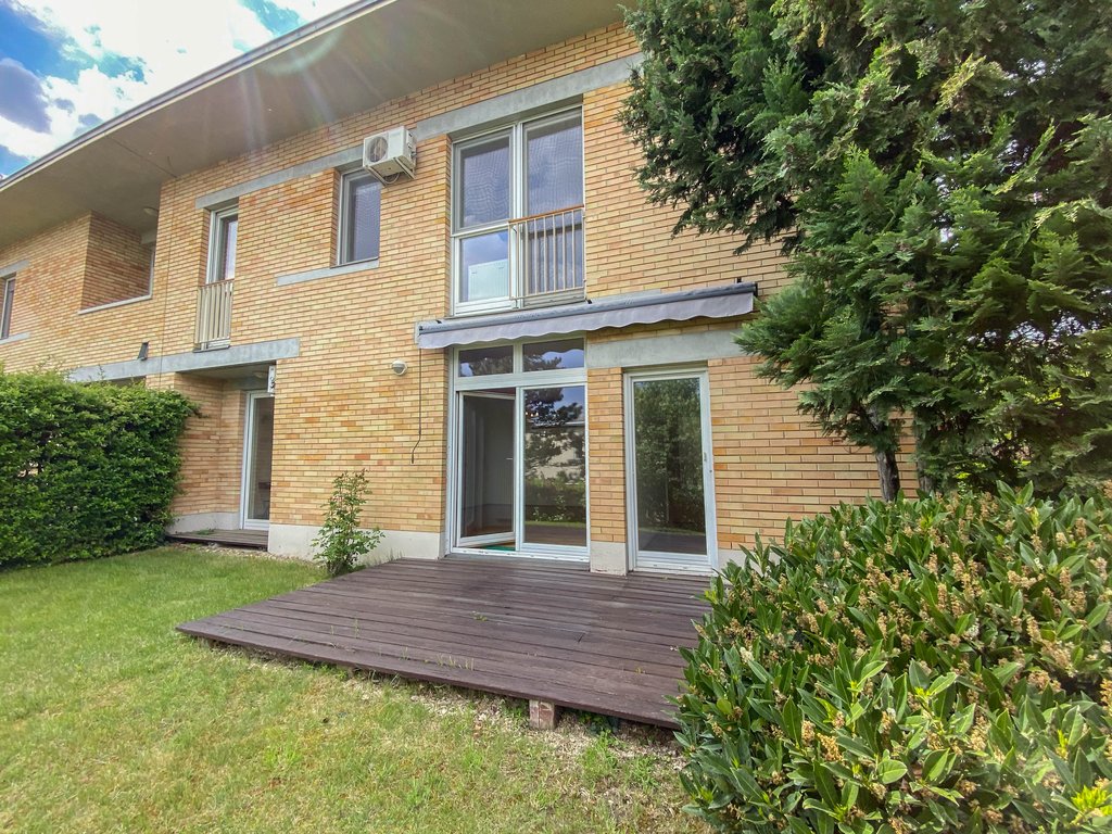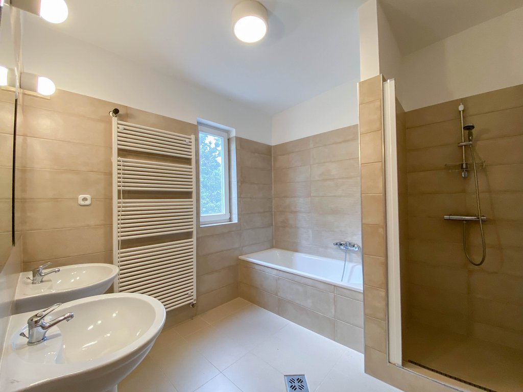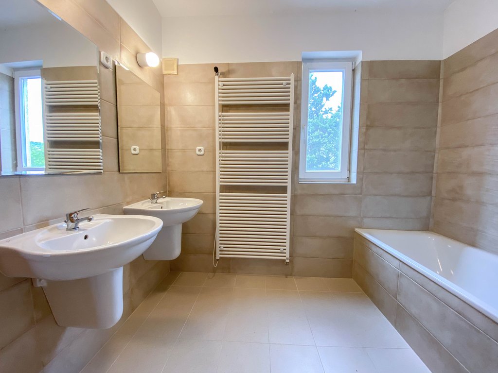 Silence and peace in the II. District! One part of a semi-detached 2-storey row-house is for rent in a security guarded nicely maintained condominium. The 125 sqm property consists of a fully equipped American style kitchen with dining area, living room, four bedrooms, two bathrooms, separated toilet and a laundry room. A huge built-in wardrobe makes the storage easier in the anteroom. The lower floor has direct garden connection to the own beautiful garden. The other part of the condominium has nicely maintained garden with playground. There is breath-taking view from the upper floor. You can enjoy Pest’s lights and the Danube from the upper terraces. One parking place is available in the underground garage. BISB is in about 5 minutes by car.
