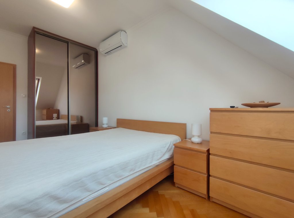 Very comfortable apartment near to Kolosy Square is for rent in a very quiet and charming street, in a modern building. The flat consists of 2 bedrooms, living room with open plan kitchen, bathroom, separated toilette and 4 sqm balcony. The flat is air-conditioned and alarm protected. It is available with and without furniture as well. You can easily reach the city center as lots of bus-, tramlines and the HEV has stops within 5 minutes’ walk, and you can enjoy the sparkling metropolitan life – with markets, shops, restaurants – in the neighborhood.