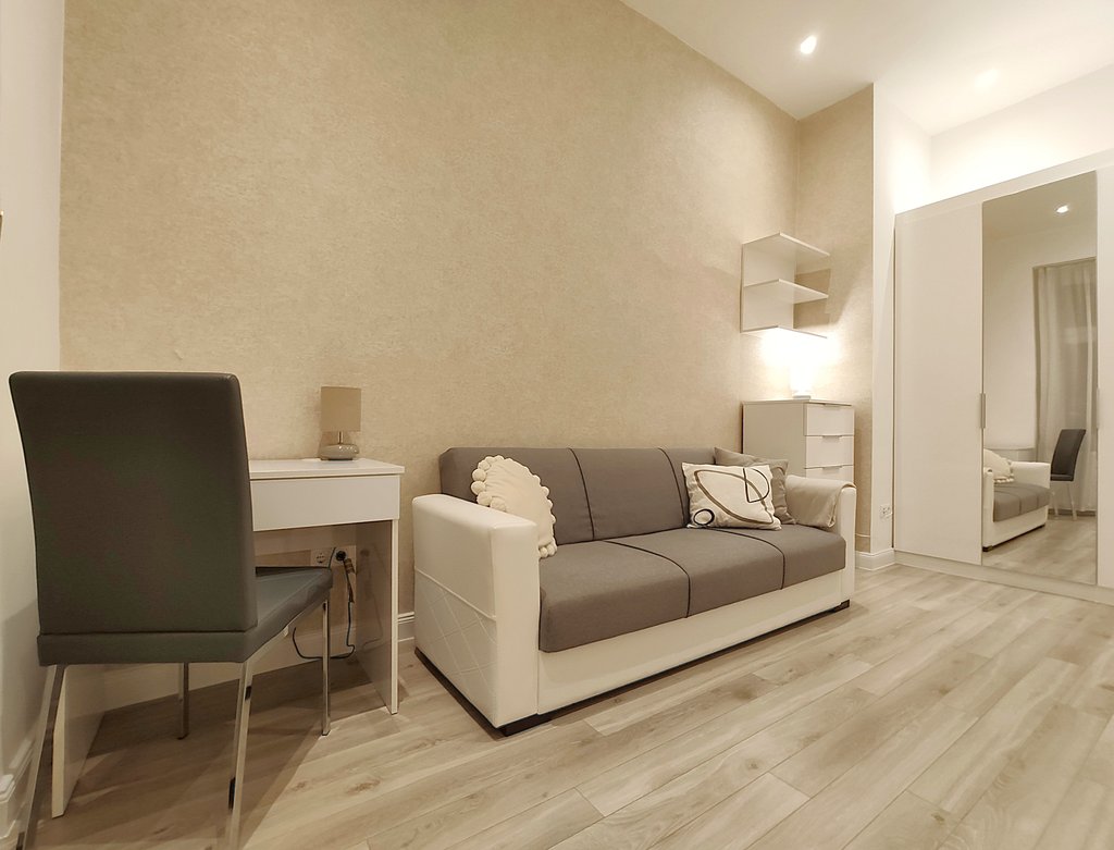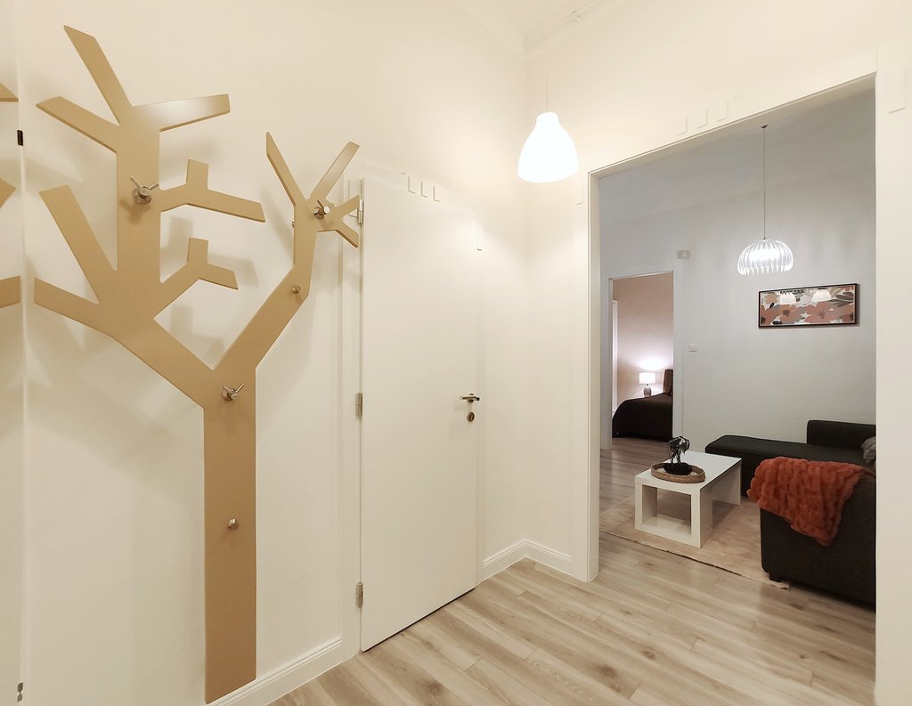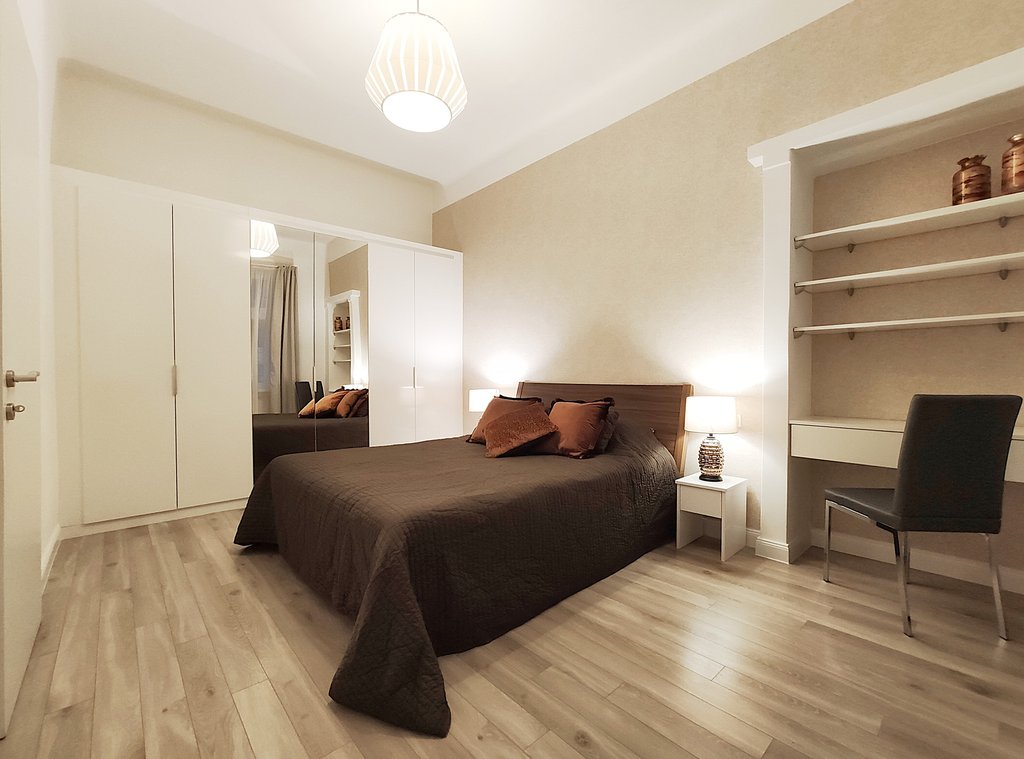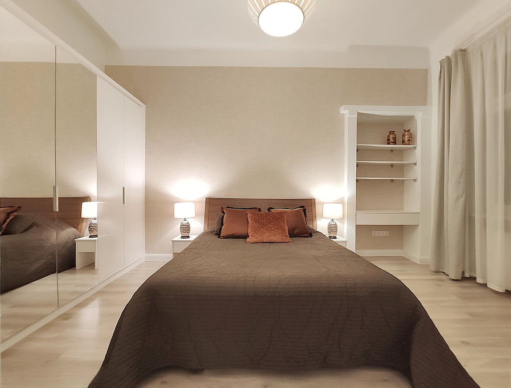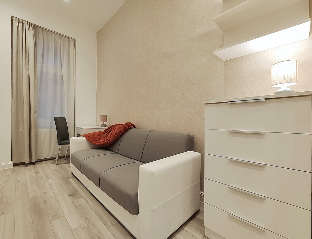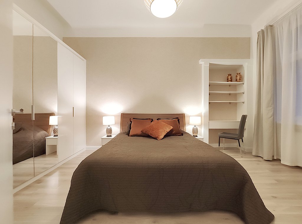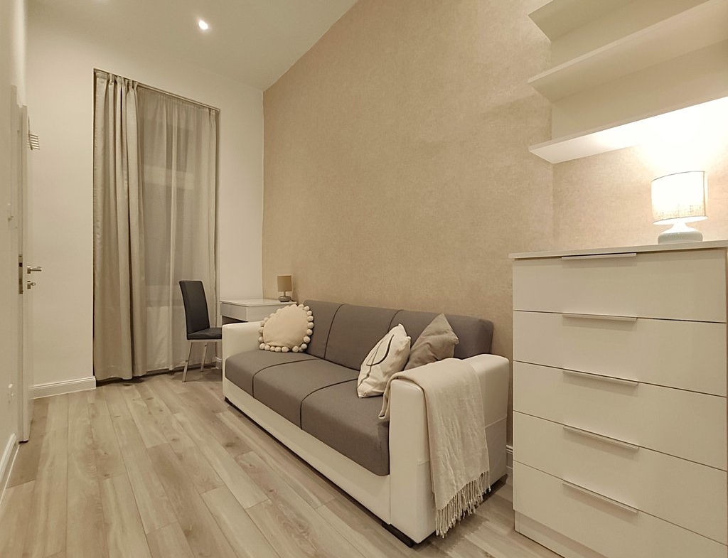In the heart of the 6th district, at Pesti Broadway, a fully furnished, air conditioned and equipped 2-bedrooms modern apartment is for rent. As the property is located on the 2nd floor, it is sunny and because it is facing to the courtyard, it is absolutely quiet. Perfect layout, pleasant colors, built-in cupboards, top quality furniture ensures relaxing and comfortable everyday life for the tenants. The kitchen is fully equipped among others with dishwasher as well. If you would like to enjoy the pulsing nightlife of the downtown and have your island of peace, this is the perfect place for you! Andrássy Avenue, Liszt Ferenc Square are all in the about 1 minute to reach.