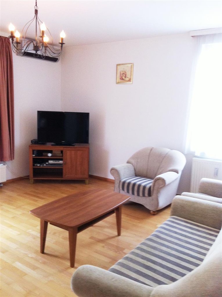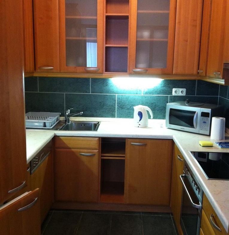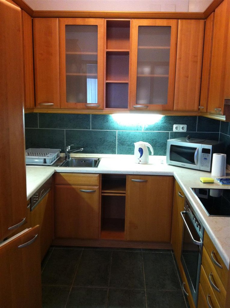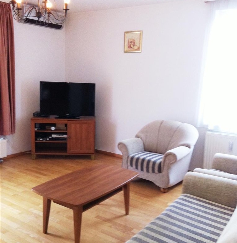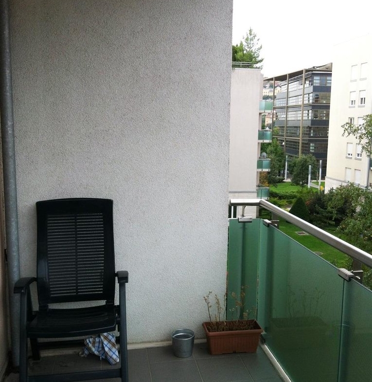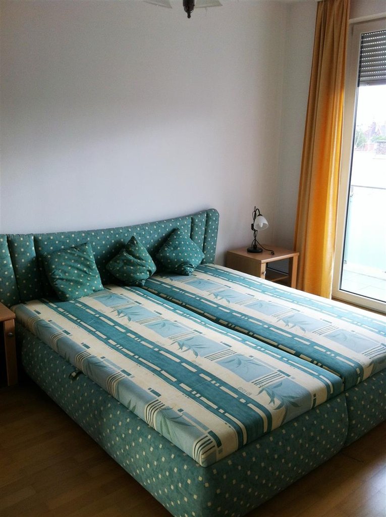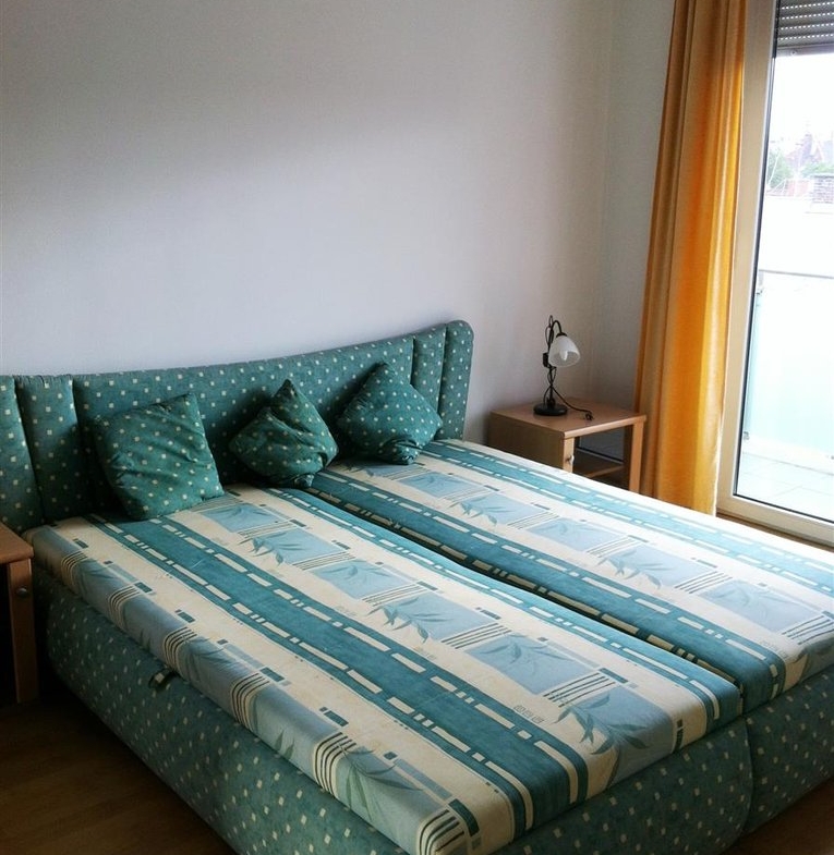 In the 12th District, Mom park condominium, a fully furnished apartment is for rent with 2 bedrooms, 2 bathrooms (one has a shower and one has a bathtub), large living room with dining area and a well equipped kitchen, which can be separated with a sliding door and 2 balconies. There is a huge storage room in the basement area and a parking place in the underground garage. The living room is equipped with air conditional and all the windows have a shutter.