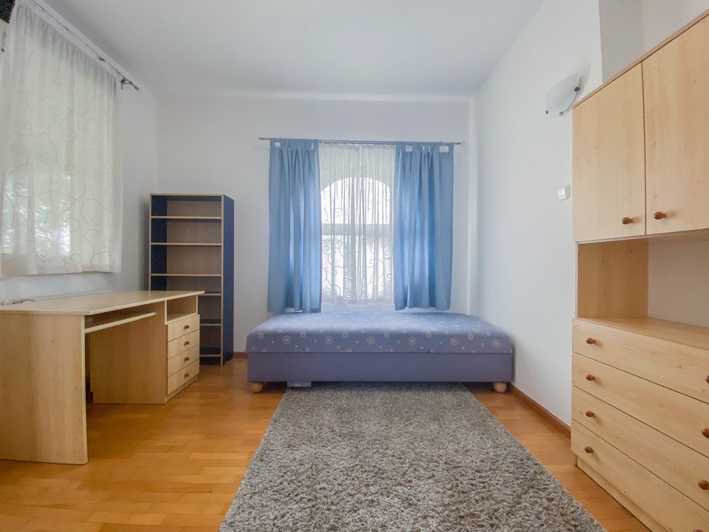 2nd floor apartment is for rent in a very safe area of the 2nd district, Szemlőhegy area. The property consists of a living room with open plan kitchen, three bedrooms, a bathroom with a bathtub and a shower, a laundry, a pantry, a guest toilet and two terraces. The flat offers many extras, like air-conditioner, alarm system and different heating types (floor heating, radiators). A paking lot in the underground garage and a storage are also part of the property. The flat is just few minutes away from Rosehill and Rózsakert Shopping Centers and from BISB and it is located in a beautifully maintained garden. There is an elevator from the deep garage. Very good public transportation access, bus stop is next to the house. Downtown can be reached in 10 minutes by car.