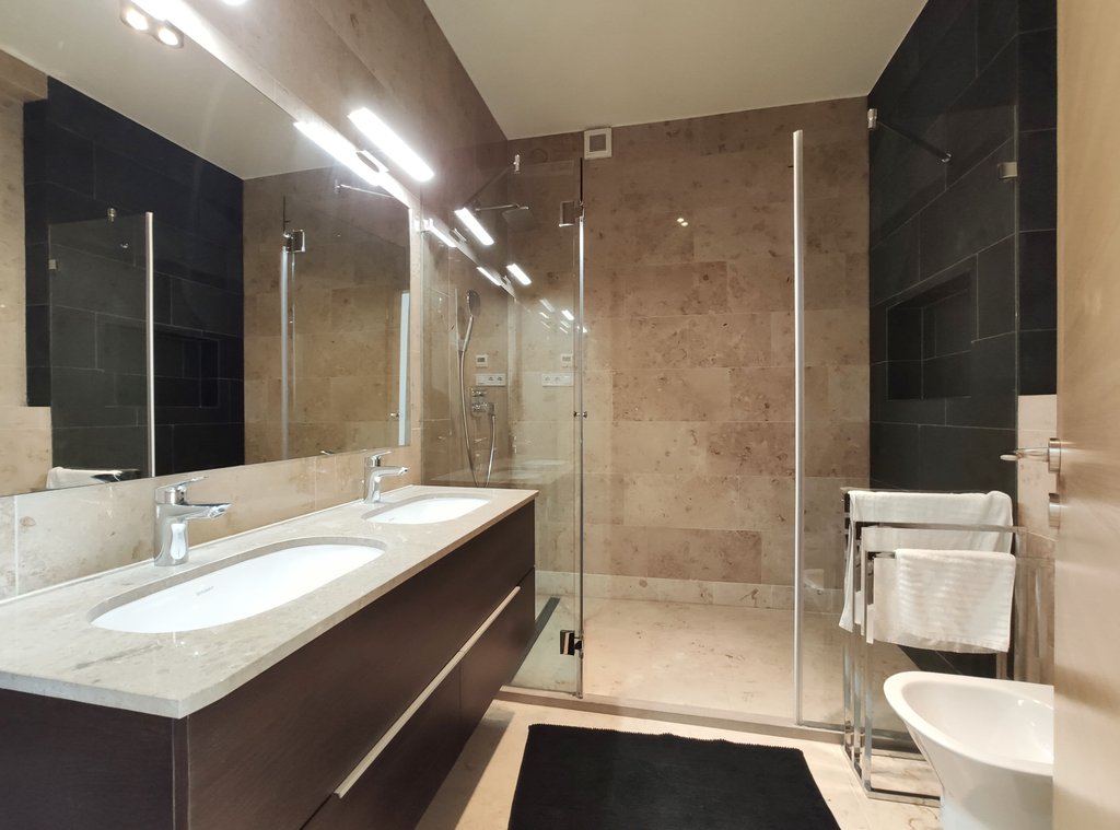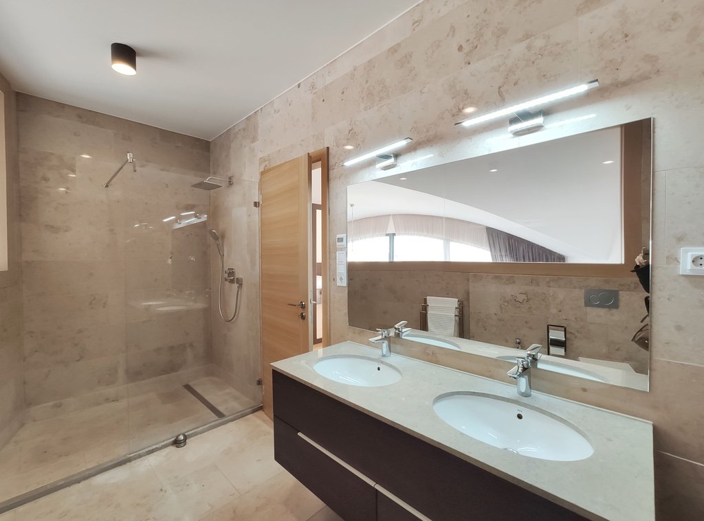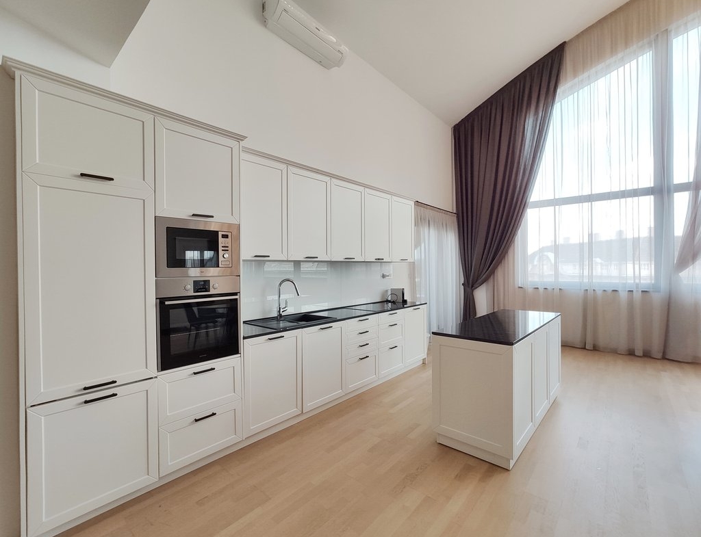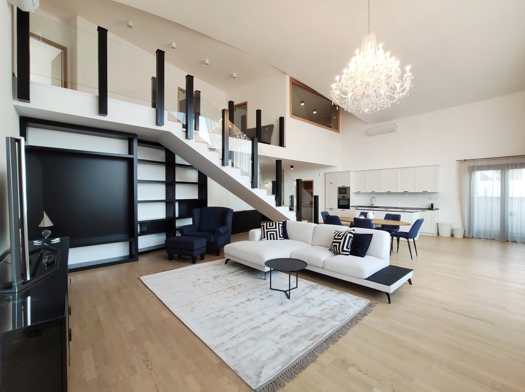 In the heart of the 5th District, near to Jászai Mari Square a newly built apartment on the top floor of a classical style, refurbished building is for rent. The 209 sqm duplex flat consists of a spacious living room with open plan kitchen, three bedrooms, three bathrooms and 4 terraces in total 37 sqm. Some of the greatest advantages of the apartment are the popular gourmet shop Culinaris Delicates, the Parliament, the riverbank Danube are within walking distance, and last but not least the lovely Margaret Island provides many opportunities for sport activities. The public transportation is excellent, metro, bus and tram stops can be reached within a few steps. We especially recommend this unique home for ambassadors, diplomats or families with children.
