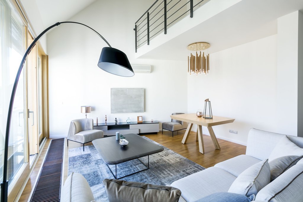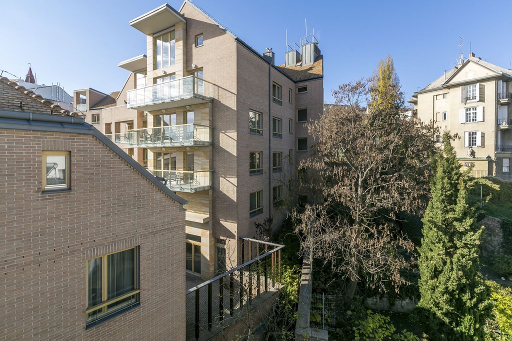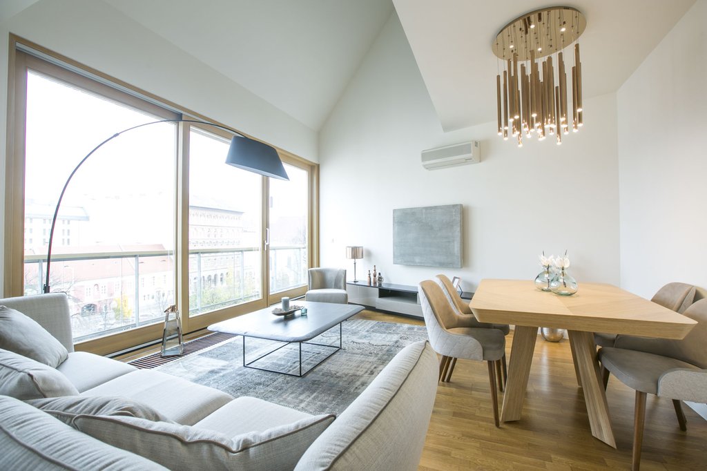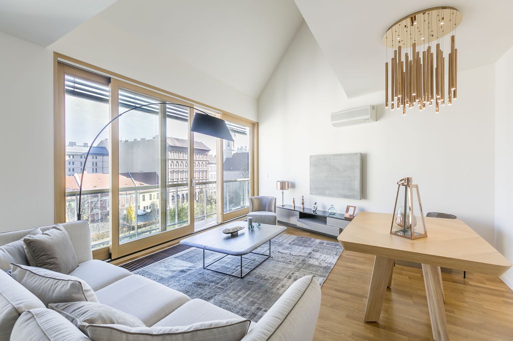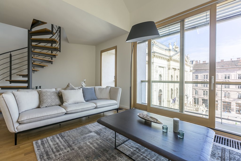 In the 1st District, in a newly built condominium a 3rd floor, 103 sqm, 2-storey apartment is for rent. The property consists of a separated kitchen, a sunny living room, 2 bedrooms, 2 bathrooms one with bathtub and the other with shower, a storage room and a 15 sqm balcony. Fully furnished with high quality Italian furniture, also alarm-system and air-conditioner are available. The building is modern, elevator and 0-24 reception makes easier the daily life. Garage and storage place can be rent in the underground garage. The area is unique and elegant, the Corvin Square is in the neighborhood where many restaurants and cafes are available, and on the Batthyány Square, which can be reached by 5 minutes’ walk, is a Market Hall and many public transport possibilities.