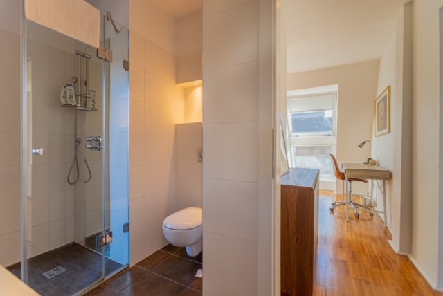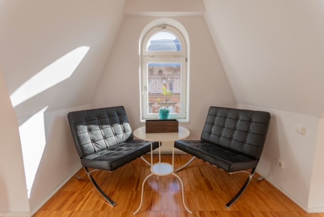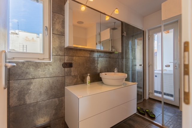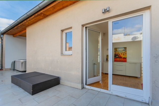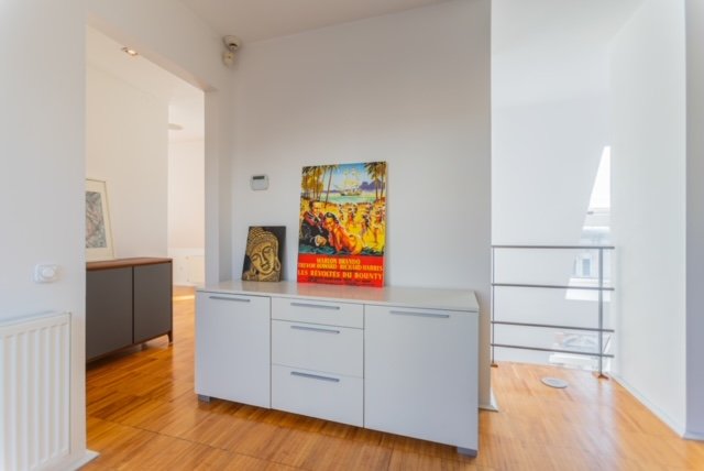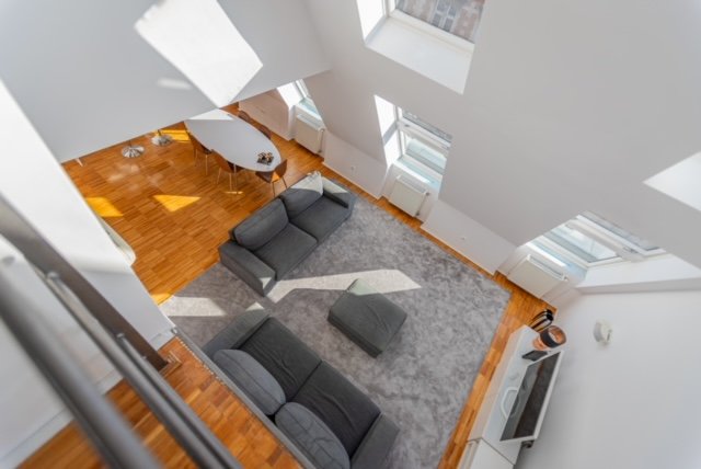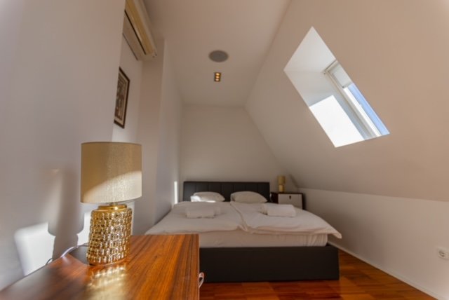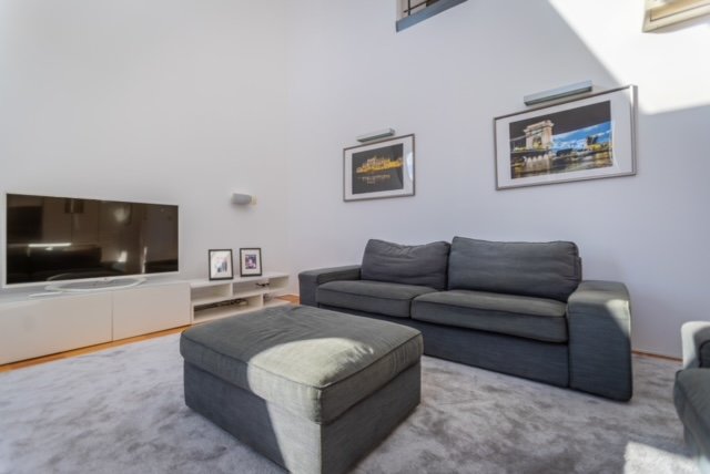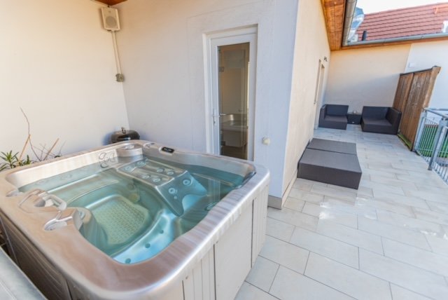 In the heart of the city, in the 6th District with excellent public transportation a duplex luxurious Penthouse is for rent. The entrance floor of the property consists of a spacious and very sunny living room with open plan kitchen, a bedroom with en-suite bathroom with a bathtub and a guest toilet. The first floor includes a gallery area, a bedroom, a bathroom with a shower, a walk-in closet and a 32 sqm roof terrace with jaccuzi. The tastefully designed and air-conditioned apartment is furnished with high quality furniture.