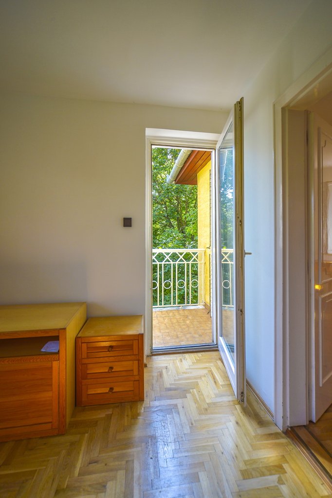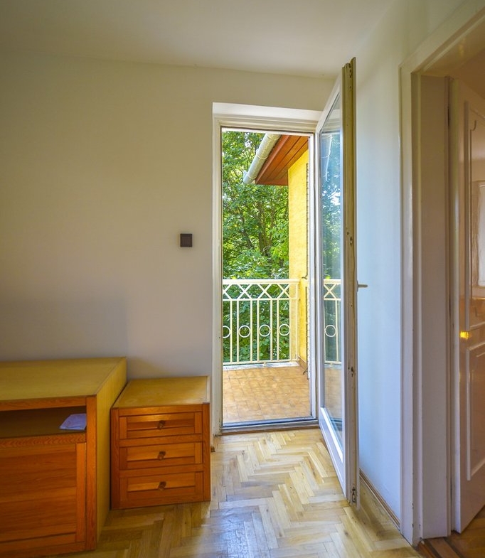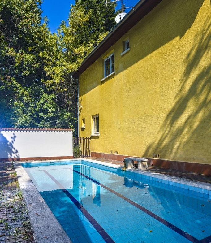 In the 12th District, near Szent Orbán Square, a very pleasant, old villa style detached house is for rent. It is available without furniture or party furnished as well. On the entrance level is the lovely covered terrace, which is useful during the summer months, as a second living room, and on this level is the kitchen with a pantry and a bathroom with shower and toilet as well. The first floor consists of 4 bedrooms, a bathroom with bathtub, toilet and washbasin, a separate toilet and 2 balconies with view to the garden and the area. There is a spacious hobby room/guest room with windows in the basement level and here is the laundry room and the machinery room of the house as well. A with a fence secured, heated swimming pool is in the back garden. Garage for 2 cars also available, further 2 cars can park in front of the garage. There is a good supermarket in the street, but also MOM park shopping mall, Sport Max sport center and the organic market are in few minutes walking distance.