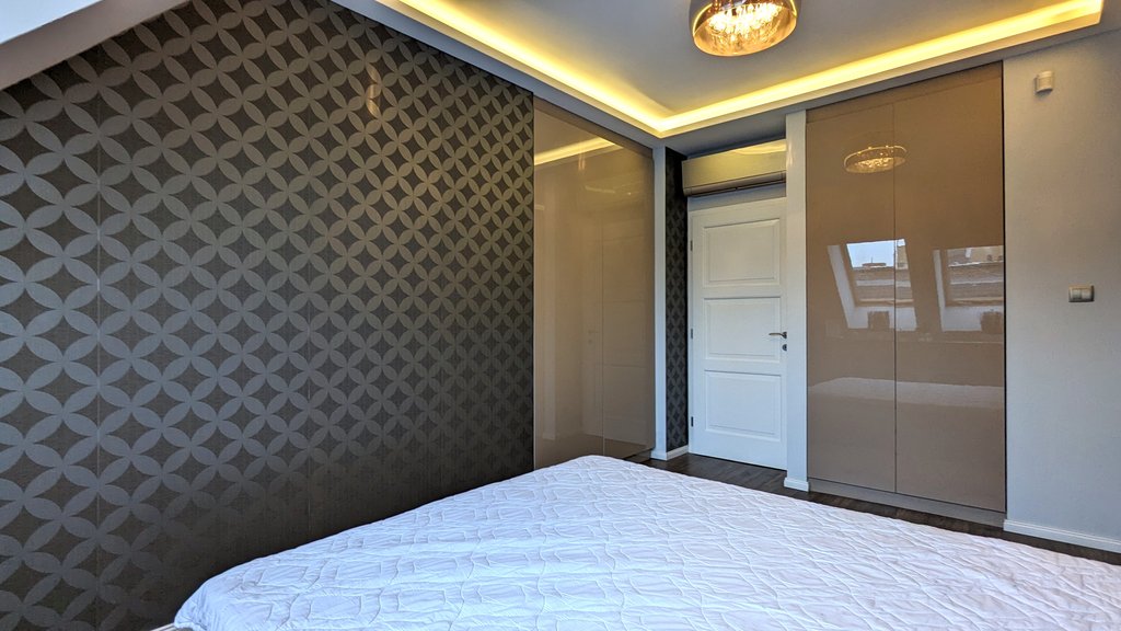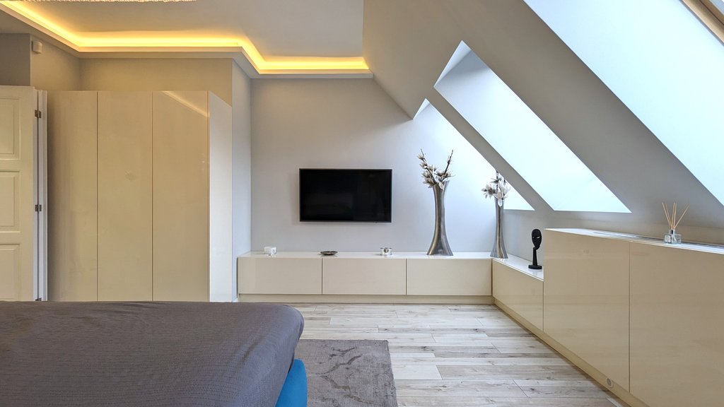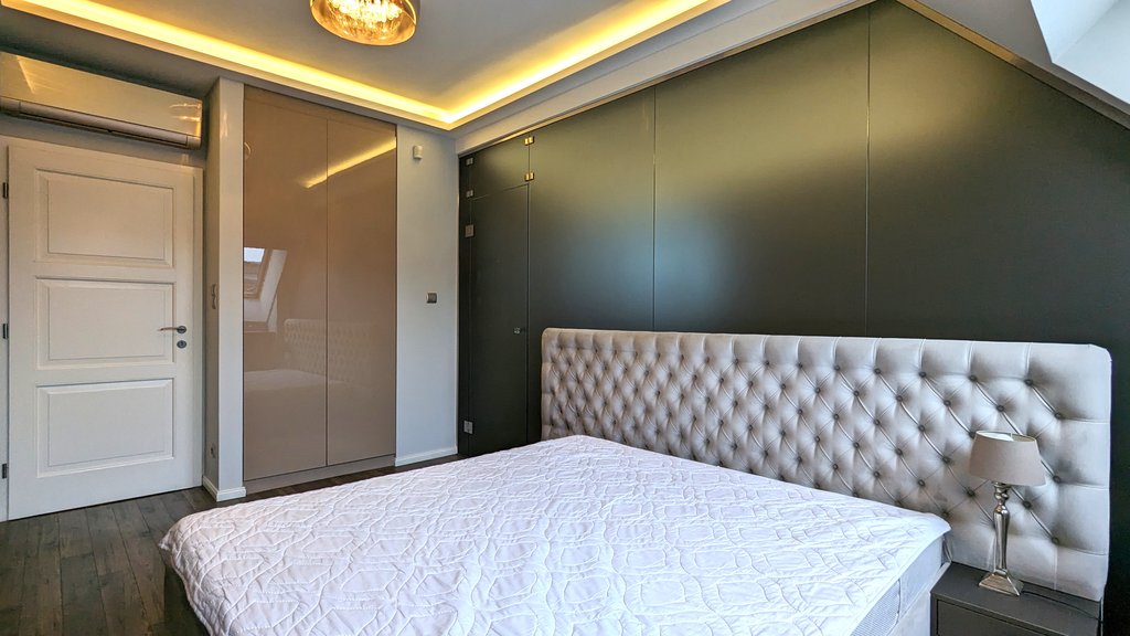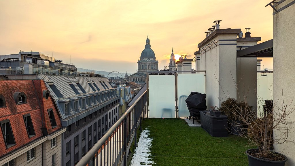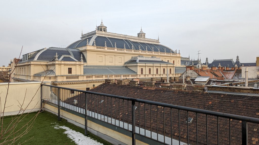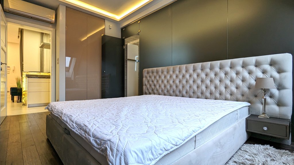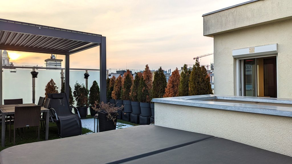 Recently renovated, exclusive, top floor apartment is for offer in the heart of the Downtown. The nicely furnished, modern property consists of an open plan kitchen with dining area and living room, a living room which can be used as a bedroom too, a separated bedroom, 2 bathrooms (one with bathub the other with shower) and a private 80 sqm rooftop terrace with amazing view over the city. The unique flat offers extras such as the top quality furniture and equipment, air-conditioner, alarm system, etc. The building with elevator has been renovated recently, so not just the cozy street, but also the building gives special charm for the area. In the nearby streets are many theatres, cafes and popular restaurants.