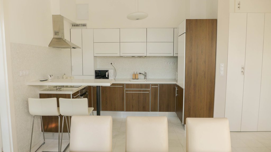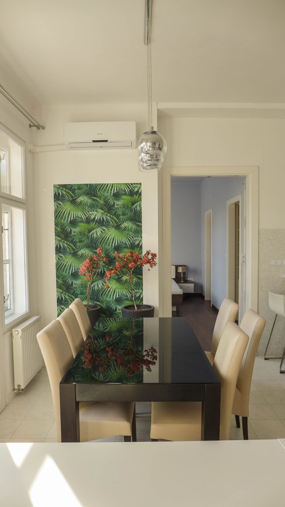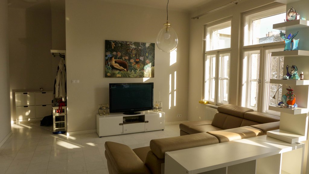 Sunny and spacious apartment is for rent in one of the most beautiful parts of the 2nd district. The flat is situated on the 2nd floor, it’s 77 sqm and consists of an open plan kitchen with dining area and living room, a bedroom with a walk in closet and a bathroom connection (with bathtub and sauna), a guest toilet, where is possible to build a shower and sink, a pantry, and a small balcony with a great view of the iconic Körszálló and the green surroundings. The apartment is fully furnished and equipped with air conditioning. The building is in a very nice condition, despite it hasn’t got elevator. It can be ideal choice for singles and couples, there are plenty of shopping and sport facilities in the area. Mammut Shopping Center can be reached by car or bus in 4-5 minutes.