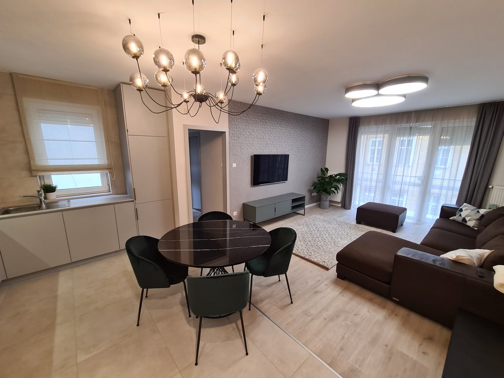 In the heart of the 6th district, a freshly renovated apartment is for rent. The 70 sqm, 3rd floor property consists of a half-closed kitchen with dining area, a living-room, 2 bedrooms, a bathroom with a bathtub and a toilet, a guest toilet and a balcony. Parking spot for one car is also belongs to the air-conditioned home in the underground garage. Public transportation is excellent: metro, tram, trolley buses are running in the nearby streets. Westend City Center Shopping mall can be reached in 5 minutes on foot. This could be an excellent choice for those who like to live nearby lovely cafés and restaurants.