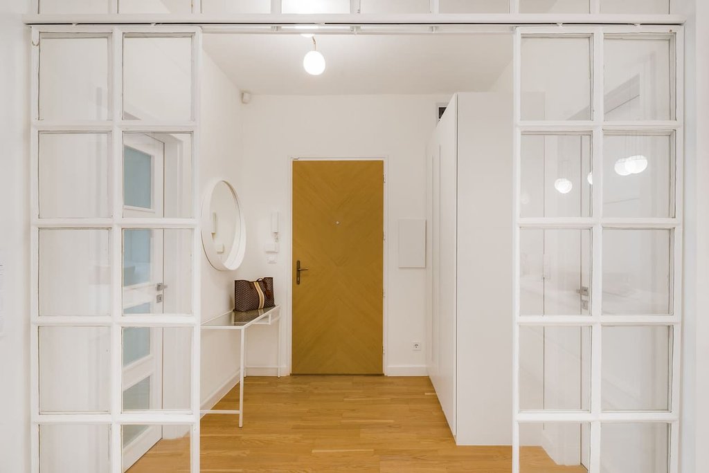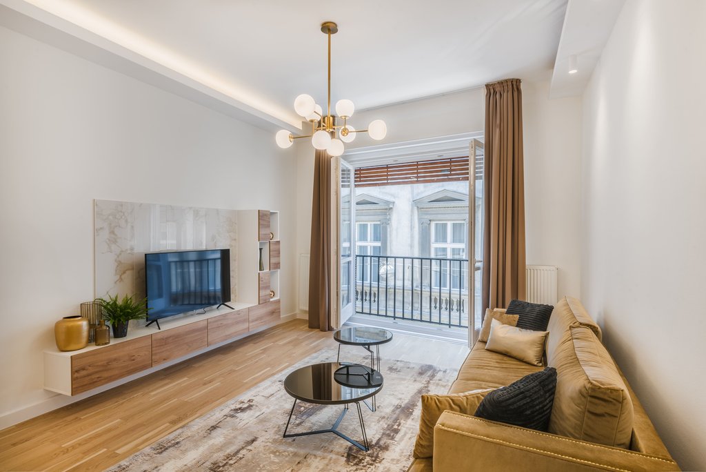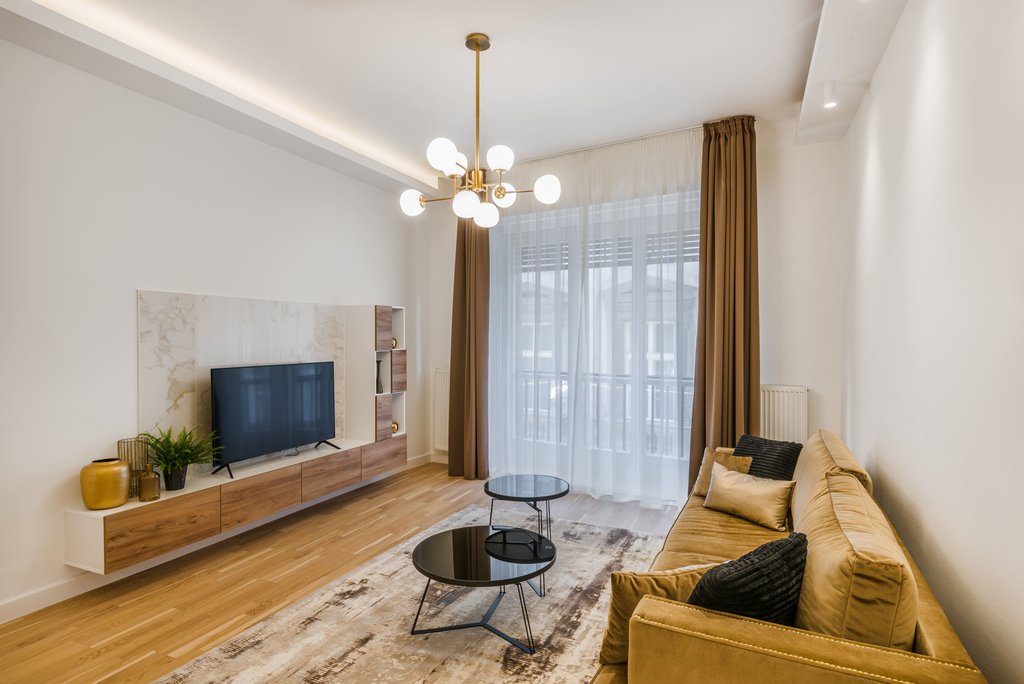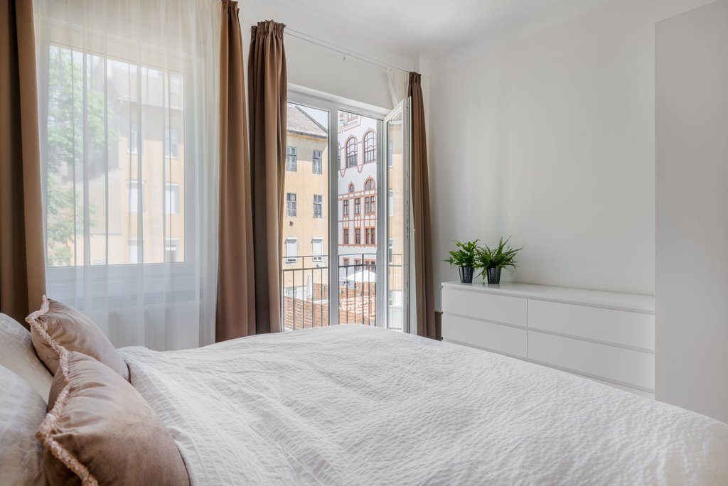 Recently refurbished, 86sqm, fully furnished trendy, bright apartment is for rent in the 6th district, behind Opera house at Hajós Street close to metro, bus, tram stations. Thanks to the carefully set up renovation with top quality materials, tailor made furniture, the property is absolutely stylish but at the same time also comfortable and authentic. The flat centres on a demanding NOBILIA kitchen and a lovely spacious living room where the dining area is to be found too. The master bedroom with built-in-wardrobe, and en-suit bathroom has direct access to the lovely balcony facing the courtyard. The living room with its French balcony is facing to Hajós street. The second bedroom is perfect for guests. In addition, there is one more bathroom with bathtub and toilet. The area offers several shopping and entertaining facilities, designer shops, groceries; beauty salons and theatres are in the vicinity. Parking is available on the street or a parking place can be rented in the parking houses close by.