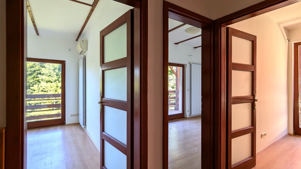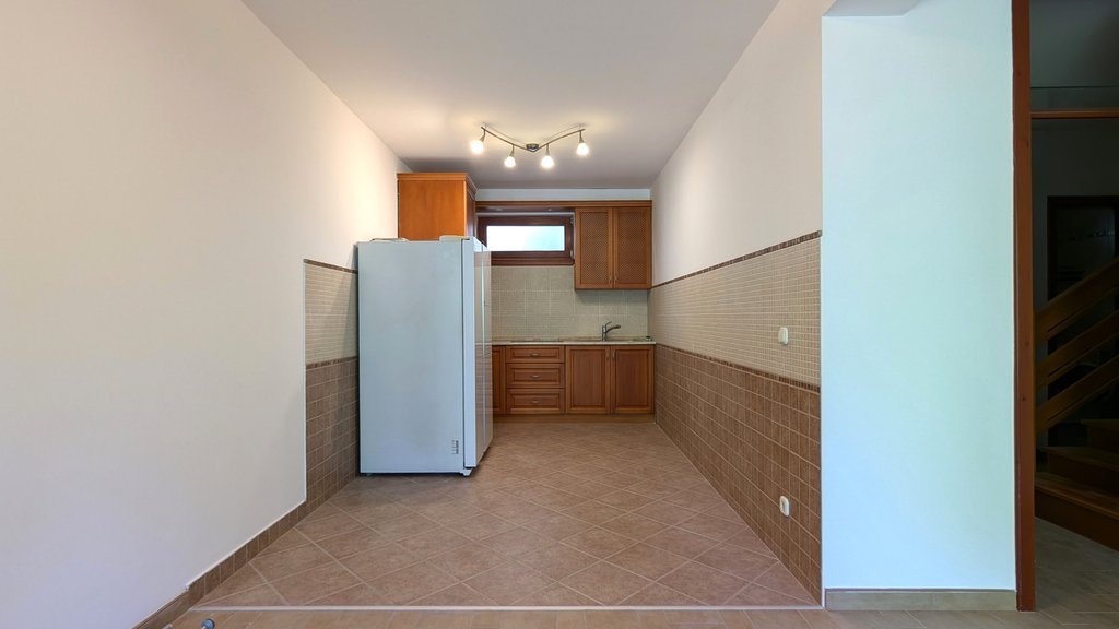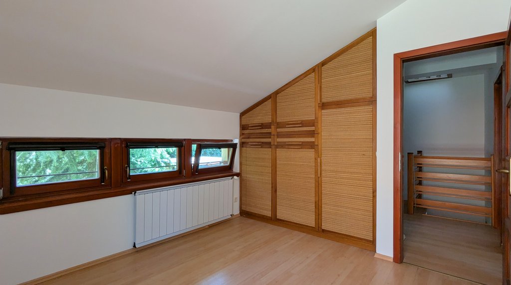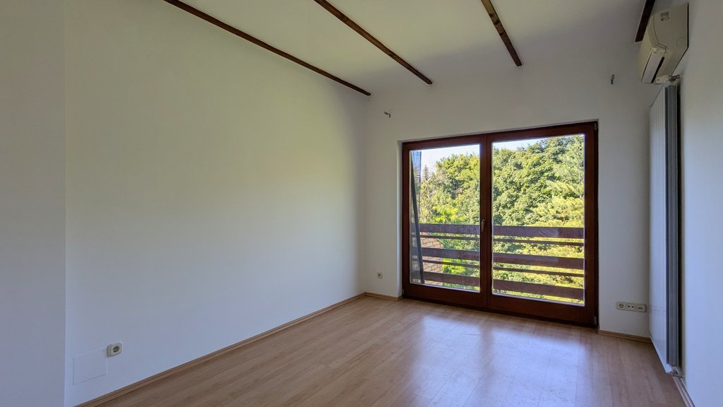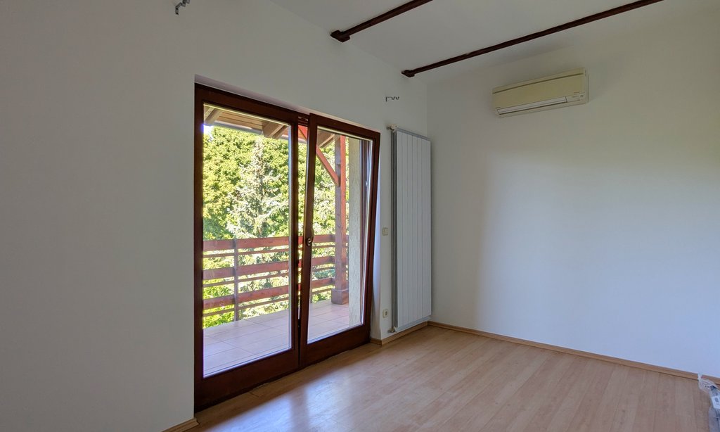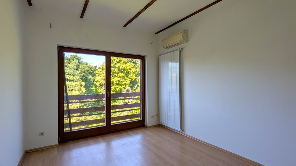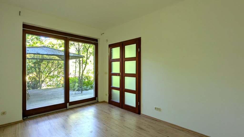 This 3-storey, 150 sqm semi-detached house is for rent in a quiet dead end street of the 12th district. The house was built in 2010 and consists of an equipped kitchen, a living room with a fireplace, 3 bedrooms, a bathroom with a bathtub and the other with shower, and several terraces. On the garden level there is a separated apartment with a living room, a bedroom, a bathroom and a large terrace connected to the garden. There is also a storage and laundry room on this level. Parking for two cars is provided in the garden.