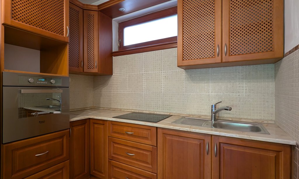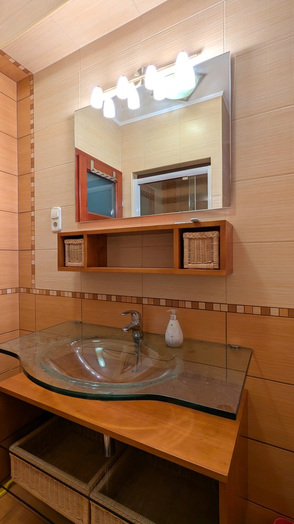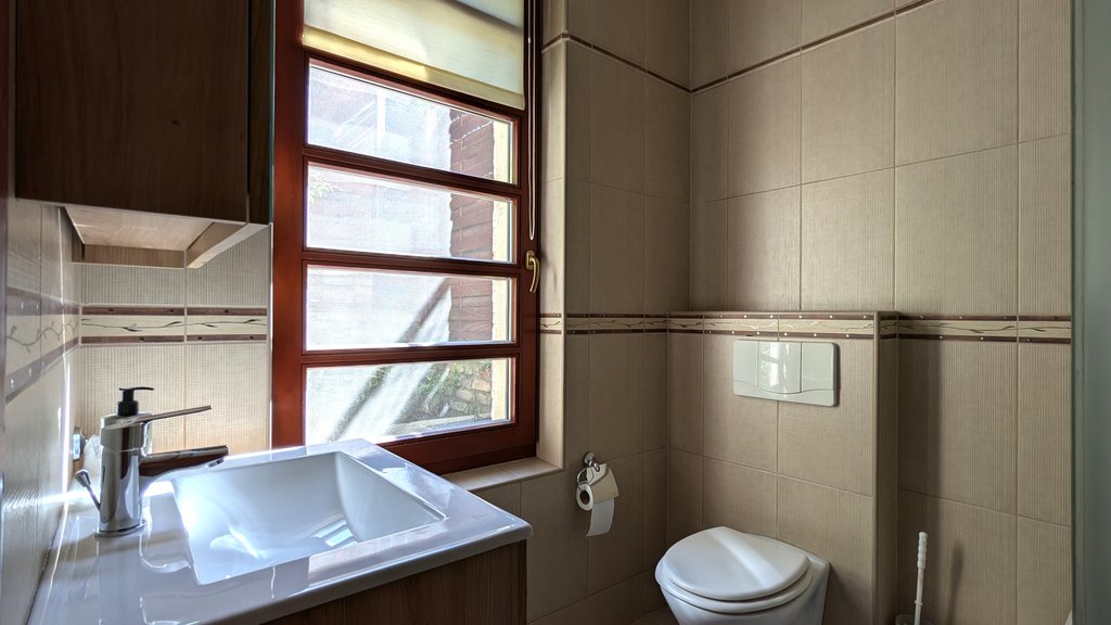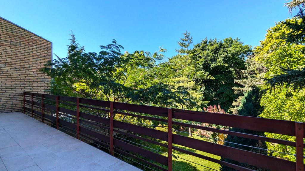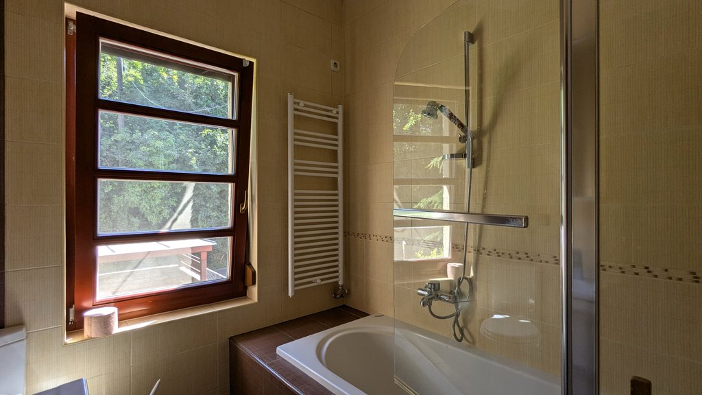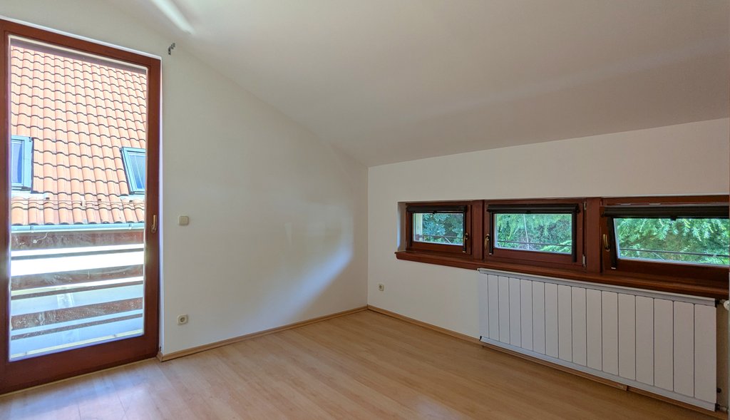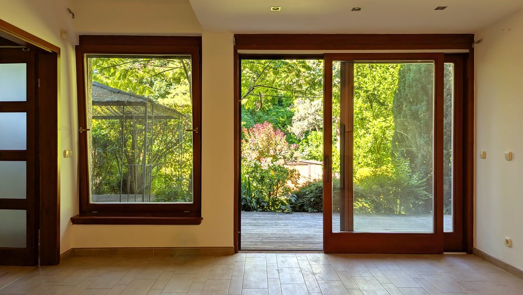 This 3-storey, 150 sqm semi-detached house is for rent in a quiet dead end street of the 12th district. The house was built in 2010 and consists of an equipped kitchen, a living room with a fireplace, 3 bedrooms, a bathroom with a bathtub and the other with shower, and several terraces. On the garden level there is a separated apartment with a living room, a bedroom, a bathroom and a large terrace connected to the garden. There is also a storage and laundry room on this level. Parking for two cars is provided in the garden.