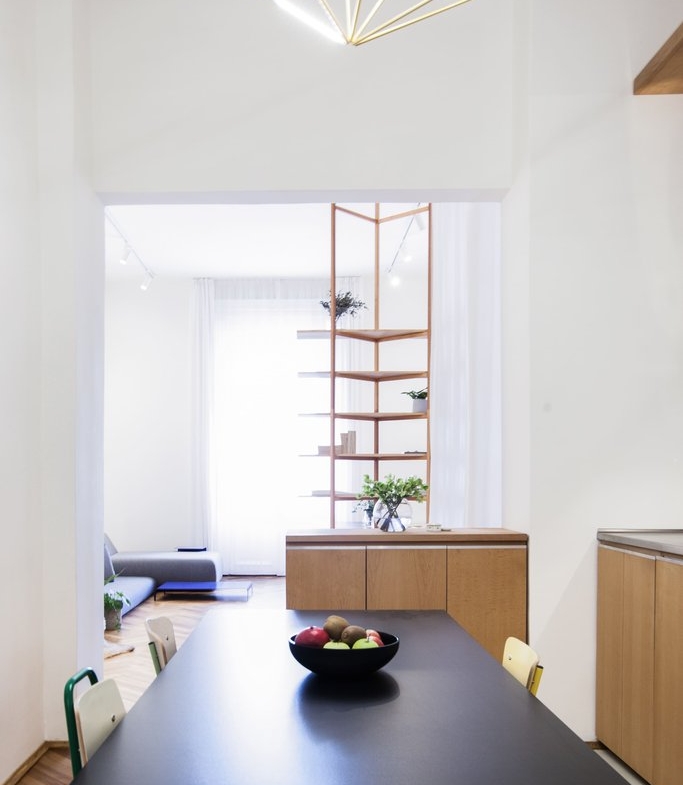 An exclusively designed boutique apartment is for sale next to the Great Market Hall with a panoramic view of the Danube. Each and every tiny corner of the 65 m2 apartment provides a well designed look. The sleeping area is separated by curtains, but there is also a gallery where 2 people can sleep comfortably. There is a stunning view from the balcony to the Danube River and Gellért hill. The apartment has been featured in architecture and design magazines, so this is a special apartment for lovers of interior design! It has a very central location, only 1-2 min walk to M4 and 49/47 tram (Fővám Tér) and 3 min walk to M3/M4 at Kálvin Tér.