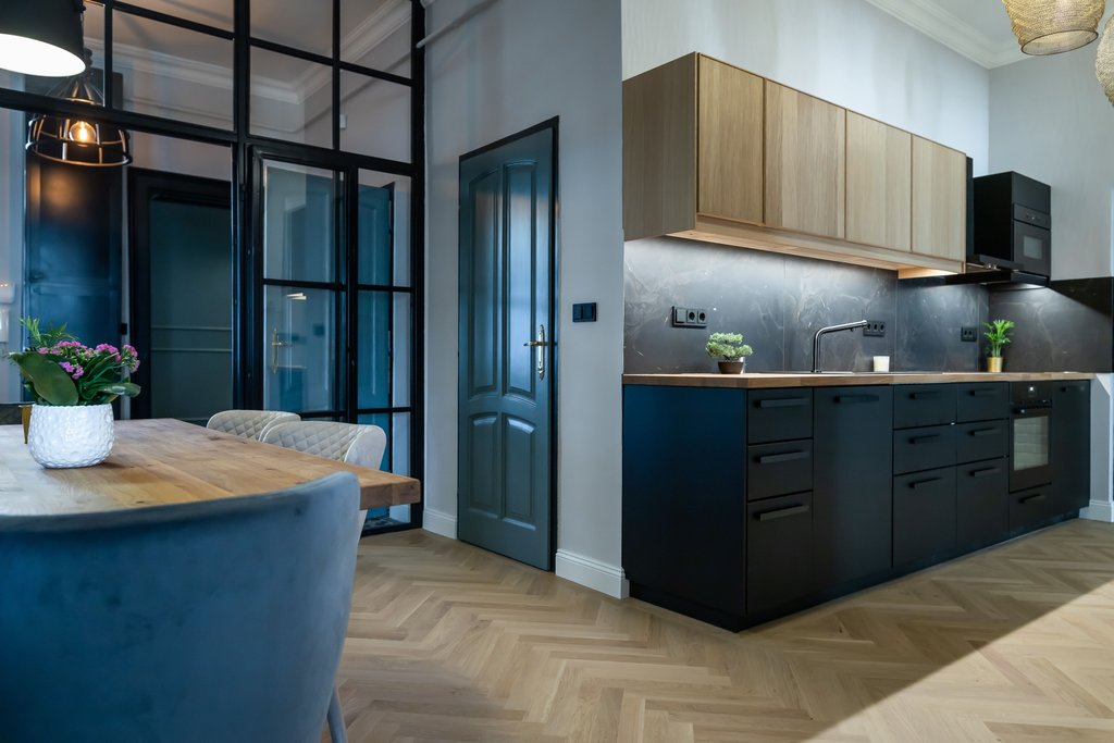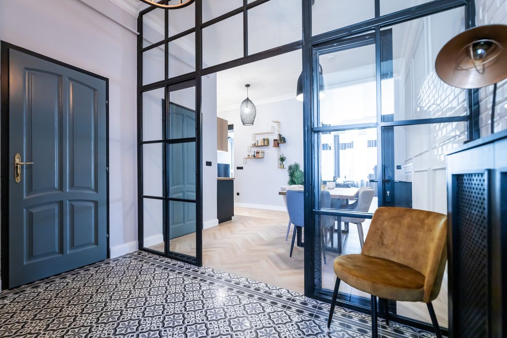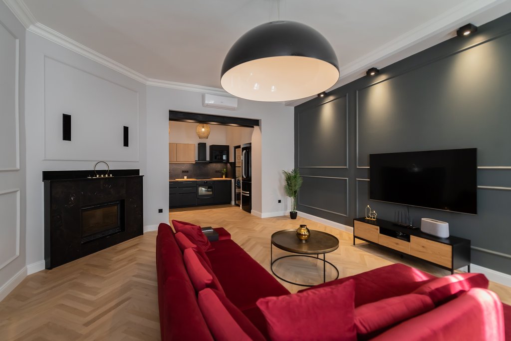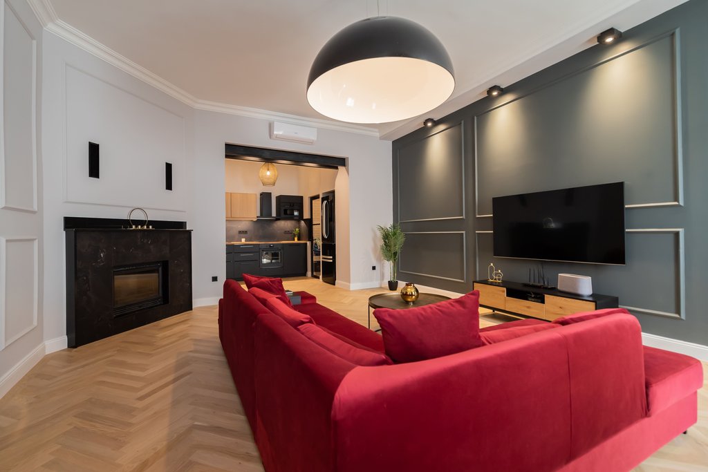 In the 6th District’s cozy street a 130 sqm, nicely renovated, modern apartment is for rent. The 3rd floor spacious property consists of a huge living room with dining area, a separated kitchen, 2 bedrooms and 2 bathrooms (one with shower and one with bathtub) and a guest toilet. The elegant apartment is fully furnished, well equipped, as extra: air-conditioner and alarm system are available. There are several cozy restaurants and bars in the street, the next metro stop is only 2 minutes away and the Deák Ferenc Square is also very close.