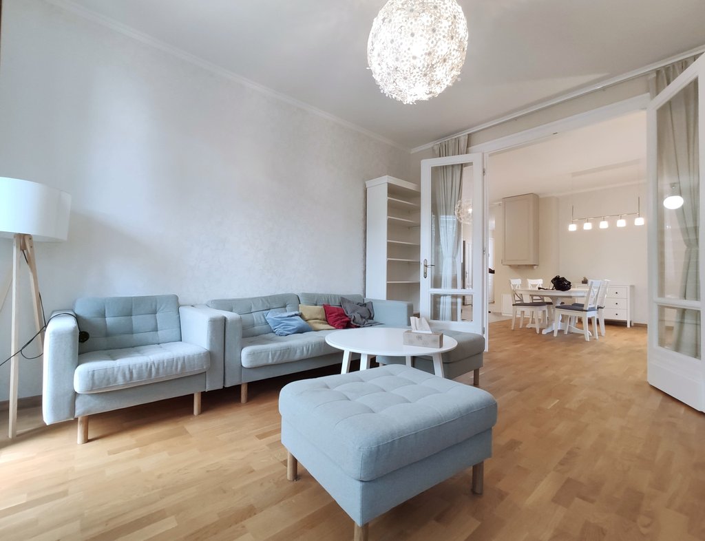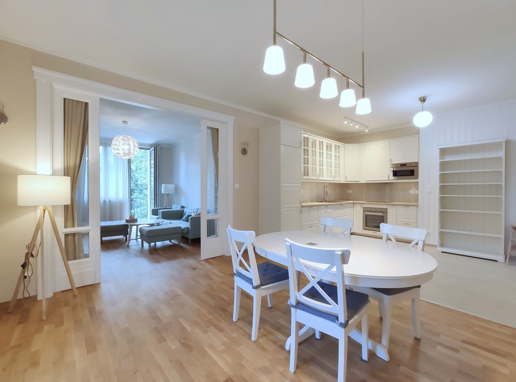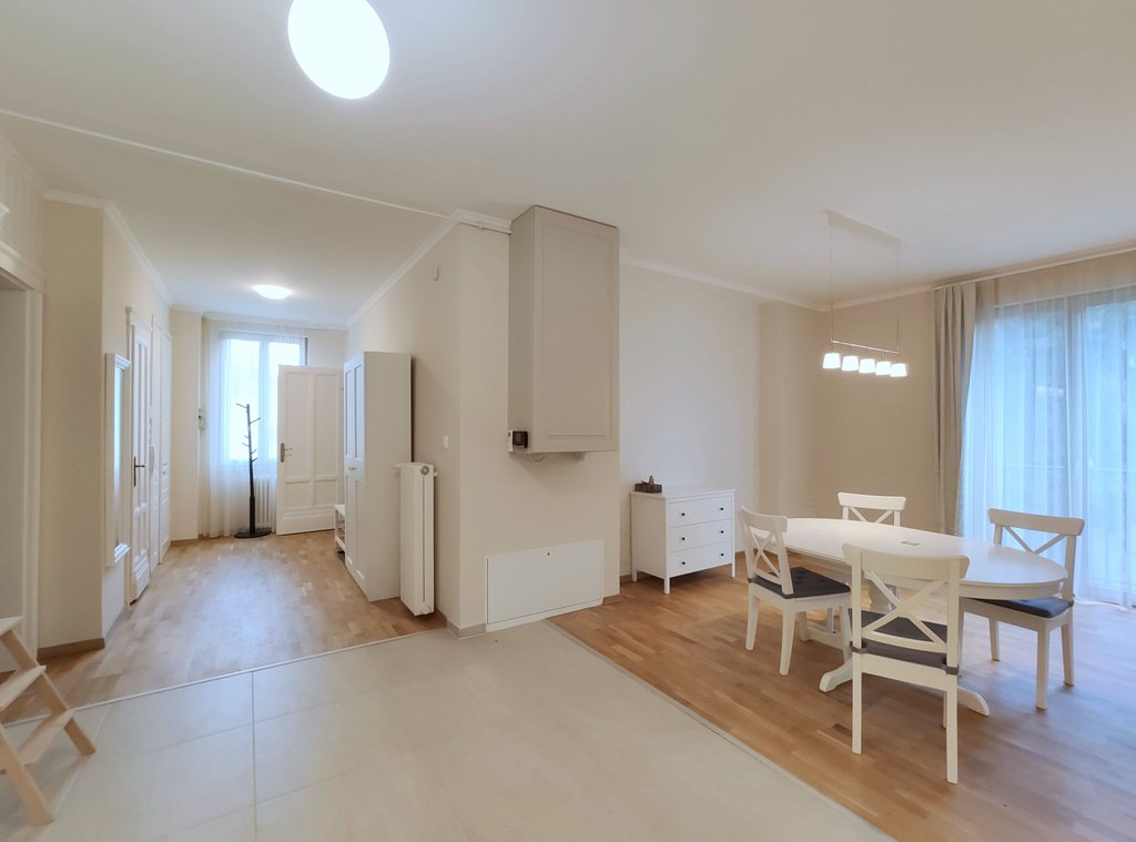 A first floor, 86 sqm apartment is for rent in one of the most beautiful streets of Pasarét. The newly renovated property consists of an open őplan kitchen with dining area and living room, 2 bedrooms, a bathroom with a shower and a guest toilet, and 2 further balconies. The apartment is extremely quiet and sunny, currently partially furnished, air conditioned and equipped with an alarm system. Parking for one car is provided in the shared garden. A shopping center, bus and tram stop are available at the end of the street.
