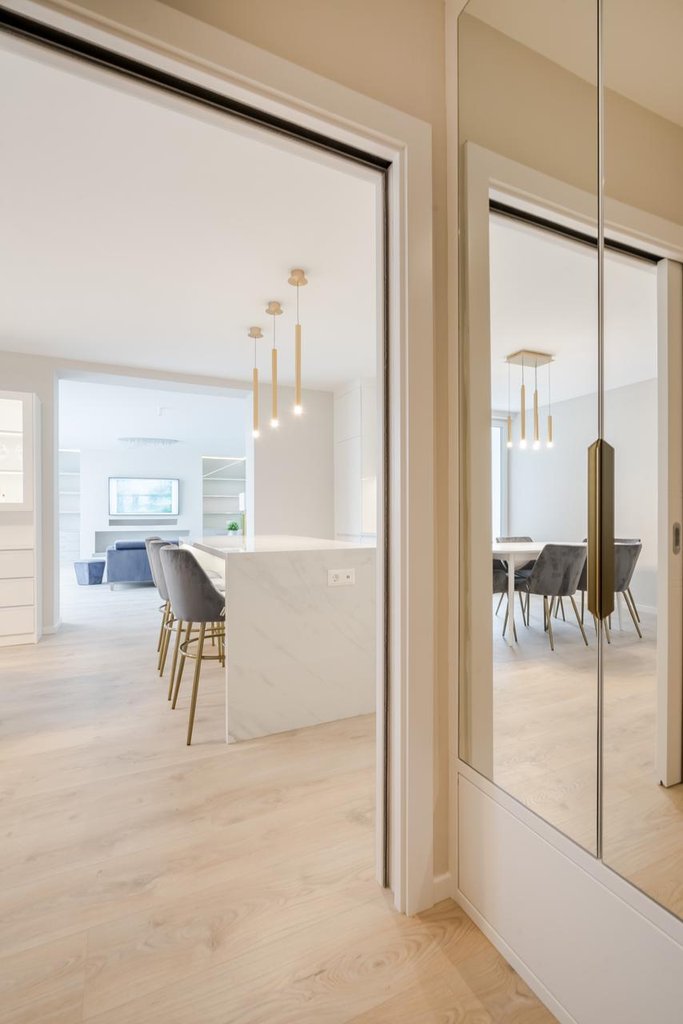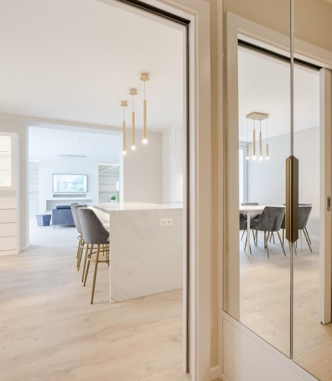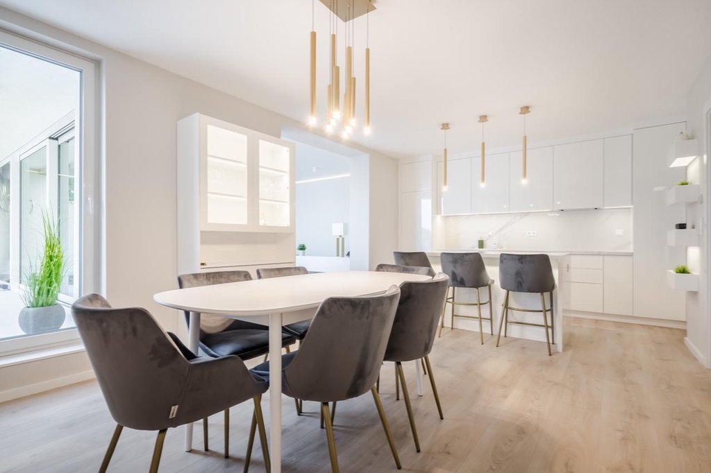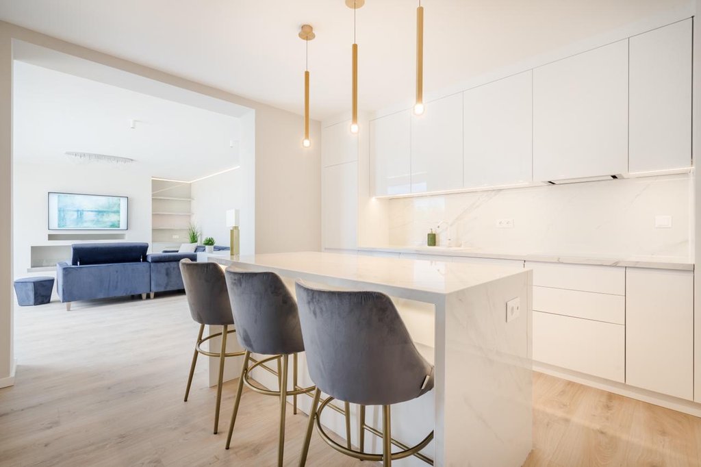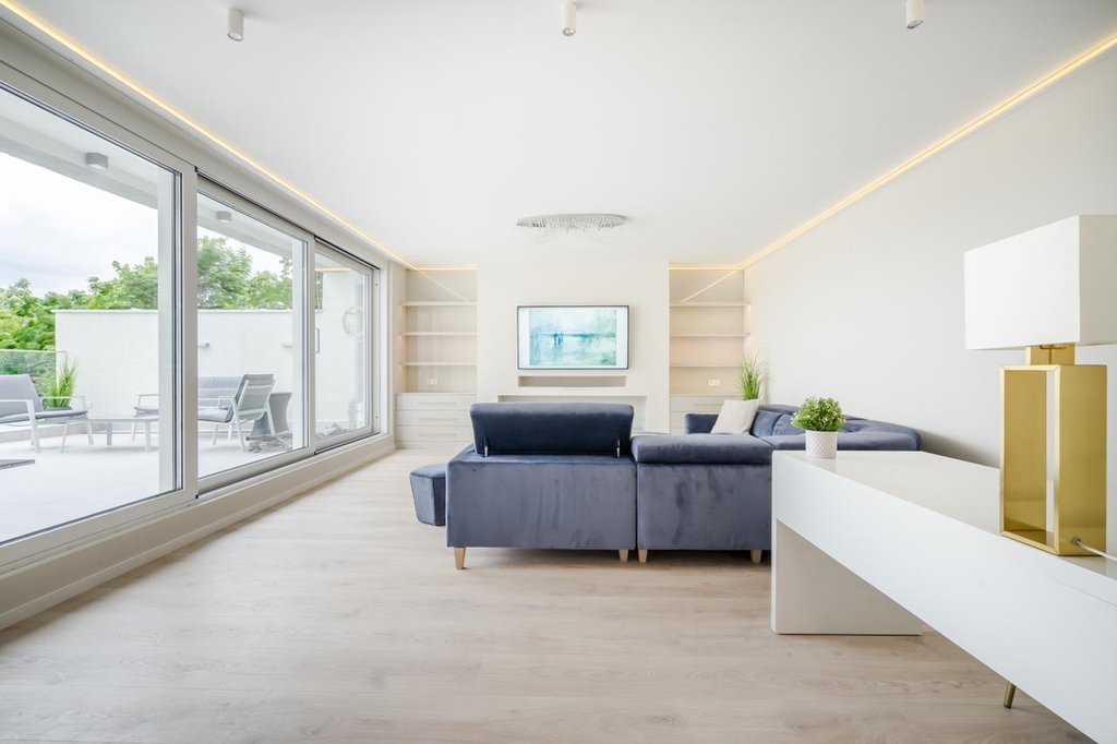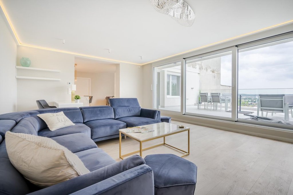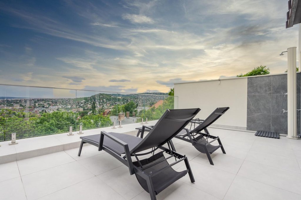 In the 11th District of Buda, Gellérthegy area, a newly renovated, furnished, cozy apartment is for rent. The stylish flat consists of an equipped, spacious kitchen and dining area, sunny a living room with fireplace, 3 bedrooms, a bathroom with bath and shower, a second bathroom with shower and a utility room. The alarm protected property also has two cozy terraces with wonderful panoramic views, one with an outdoor shower. The apartment has numerous storage spaces and is furnished with modern furniture. There is a new heat pump ceiling cooling and heating system. An outdoor parking space is provided for one car. Bus 27 stops within easy reach and there are several small shops within a few steps away.