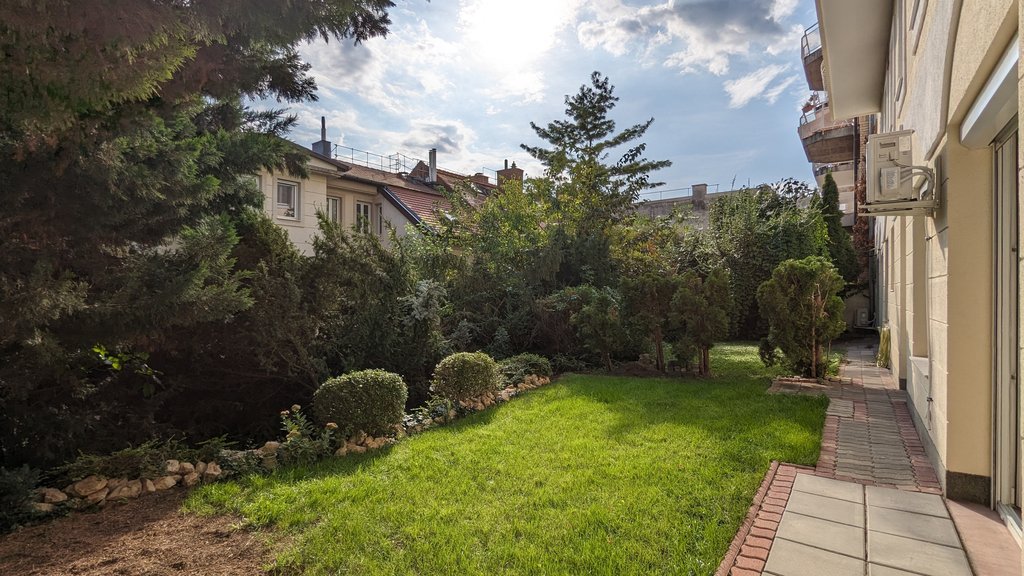 In one of the most atmospheric streets of the Castle District, a 100 m2, furnished apartment with a direct garden connection is for rent in a newly built apartment building. The extremely quiet and