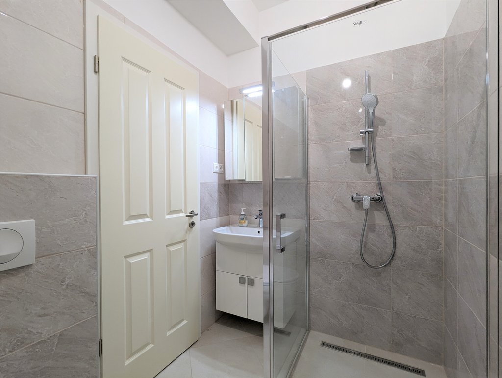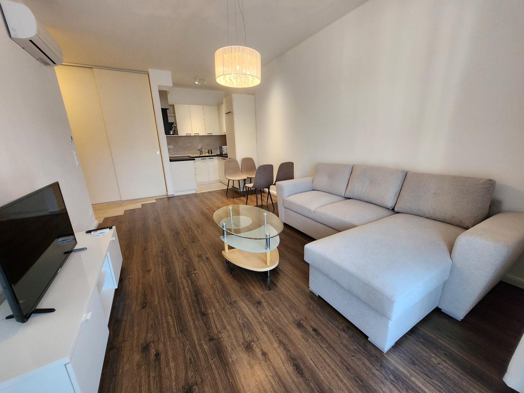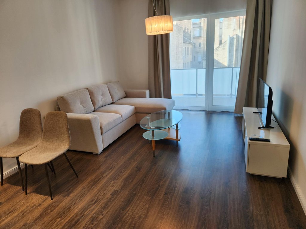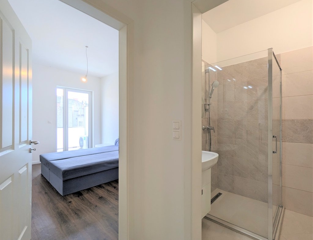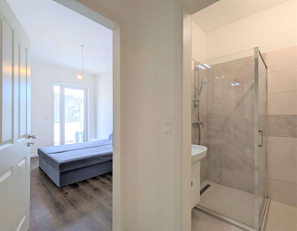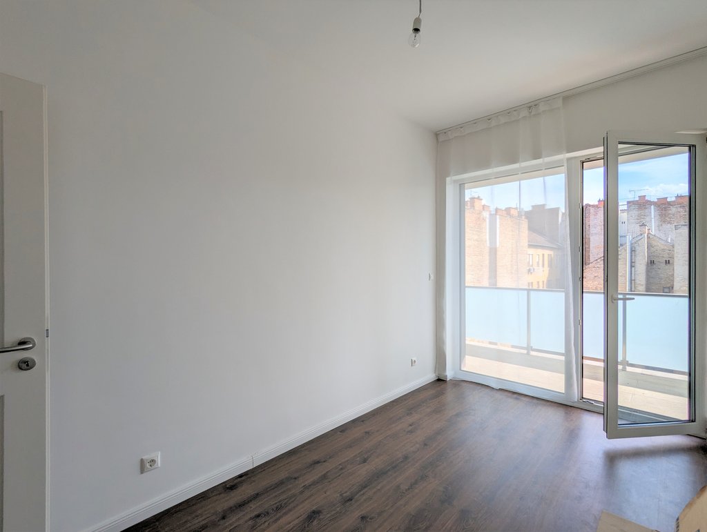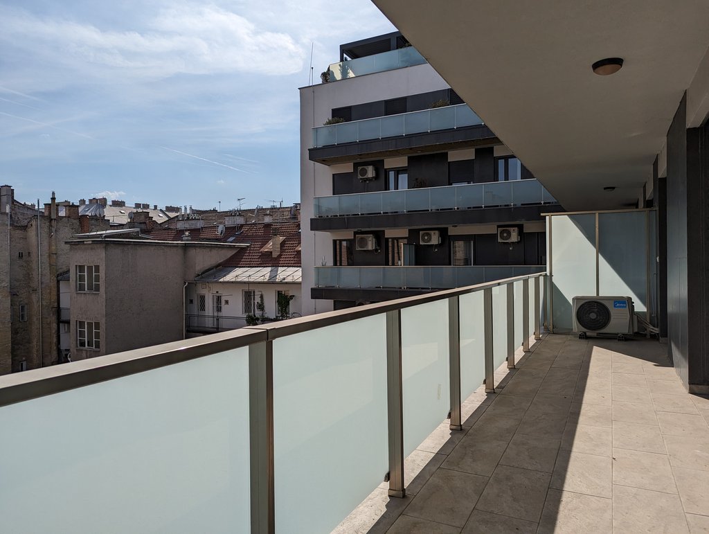 In the 13th District, we offer for rent a quiet, modern, air-conditioned apartment with courtyard view. The property consists of an equipped and furnished open-plan kitchen with dining area and living room, 2 bedrooms, a bathroom with bath and shower, and a guest toilet. The sunny 18 sqm terrace can be accessed from both bedrooms and the living room. The building has concierge service and elevator as well. Parking lot can be rented for extra charge (60 000 HUF/ month). Nyugati train station, Westend 2 minutes walk away.