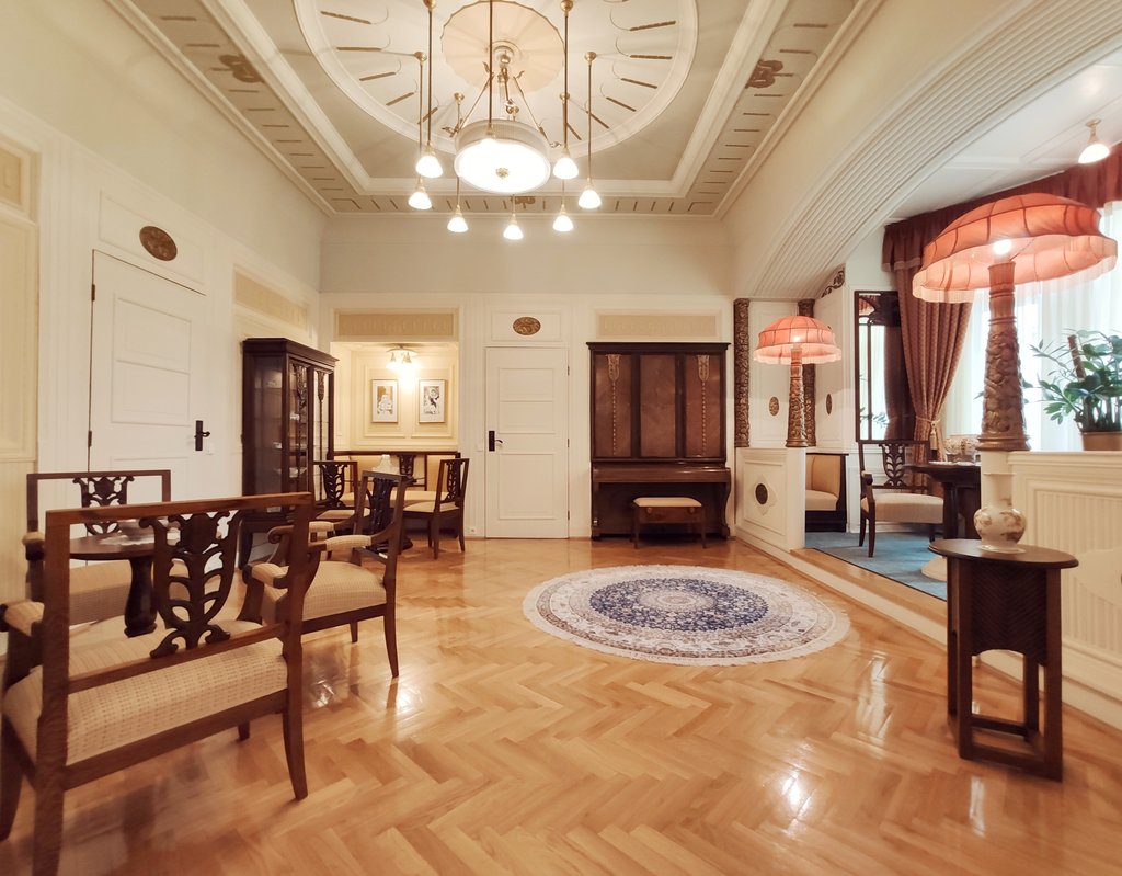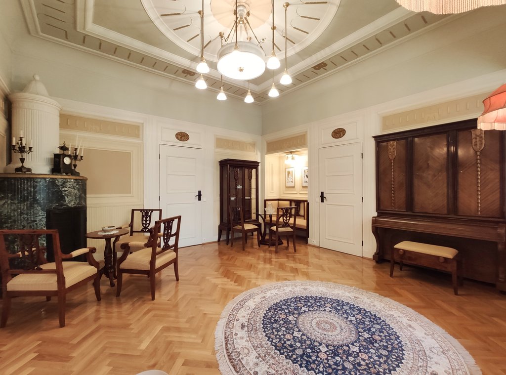 A very unique property in the Palota district is waiting for its new owner who is fond of historical curiosa from the art nouveau era. The apartment was kept the style of the post war period. It consists of an elegant ladies’salon, a cosy cigar salon, a large study, two bedrooms, a separate kitchen, a separate large dining room, two bathrooms (one with a shower, one with a bathtub) and a guest toilet. The property is so special that it is under art protection.