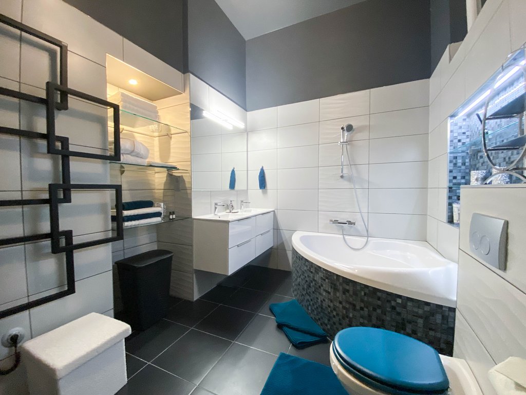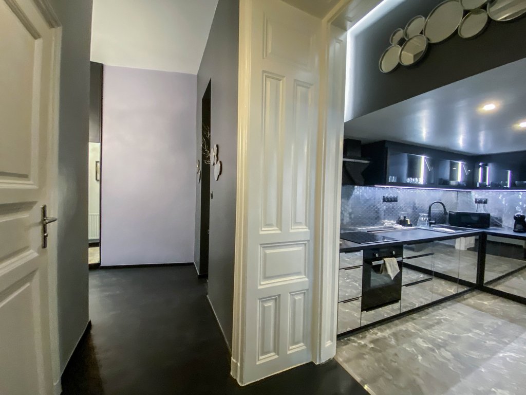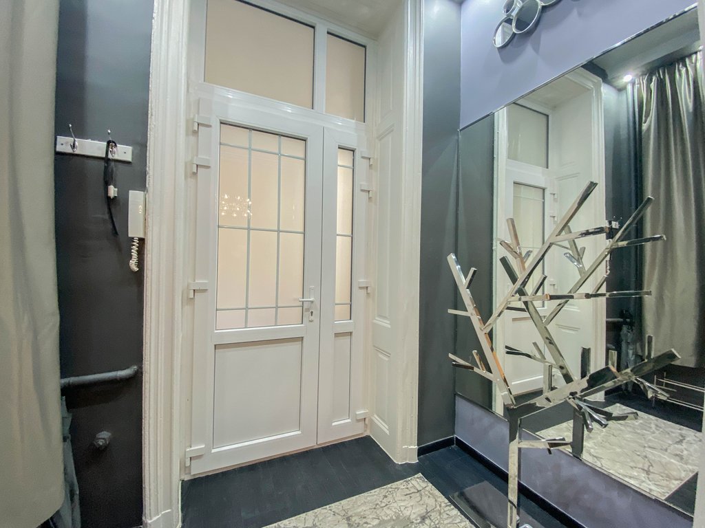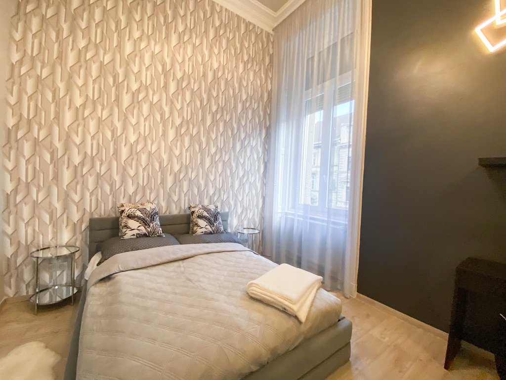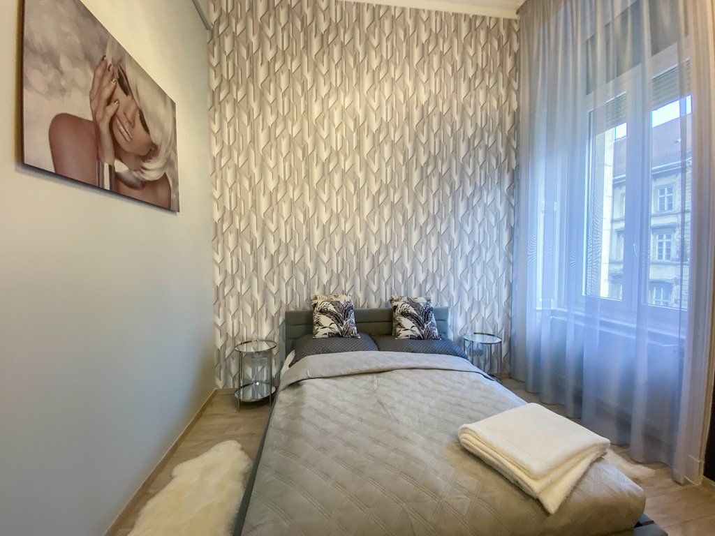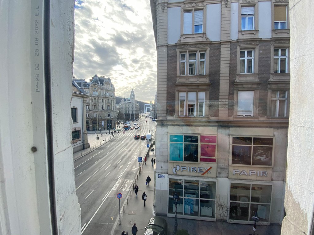 A sunny, spacious apartment is for rent in the bustling part of the city center, in the Disrtict 5, at the foot of the Erzsébet bridge. The 146 sqm apartment is on the 2nd floor and consists of a fully equipped, mechanized stylish kitchen, a dining and bar area, a corner living room with two balconies, 2 bedrooms, a guest bedroom on the gallery with a shower, the second bathroom with a corner bathtub and a sauna, and the third with a shower , a guest toilet, a walk-in closet and a hall. The apartment is air-conditioned, tastefully furnished with high quality furniture and decorated nicely. The house is well maintained and has an elevator. The neighborhood is popular for its many restaurants and shopping opportunities, and the neighboring hotels offer exclusive recreation opportunities.