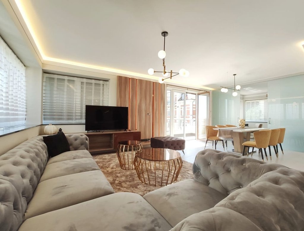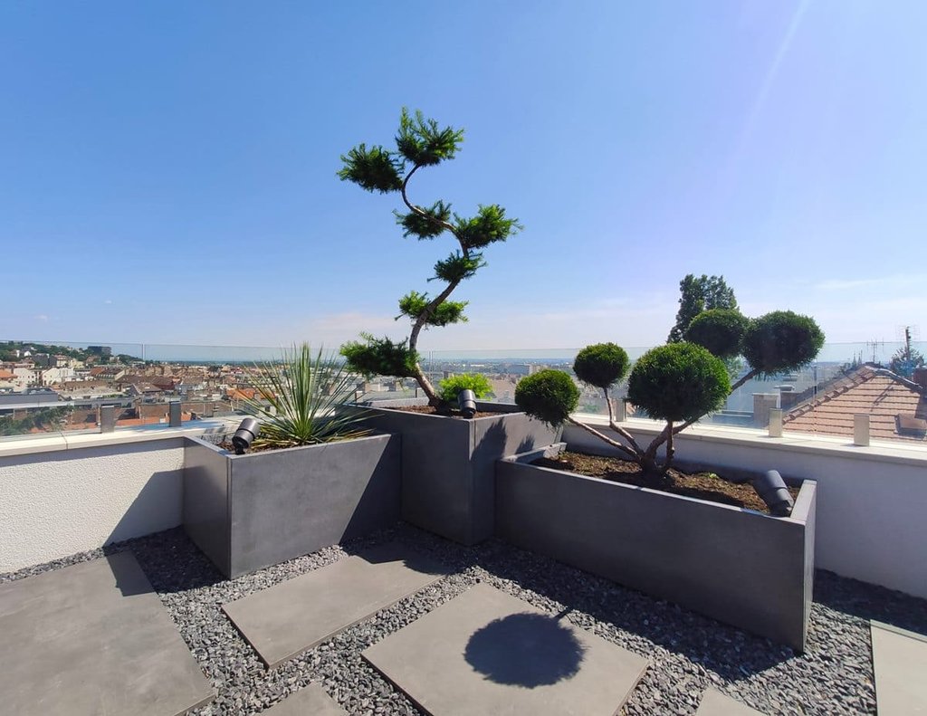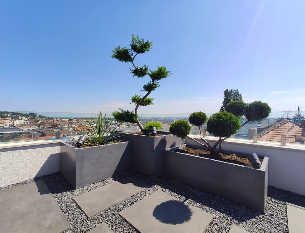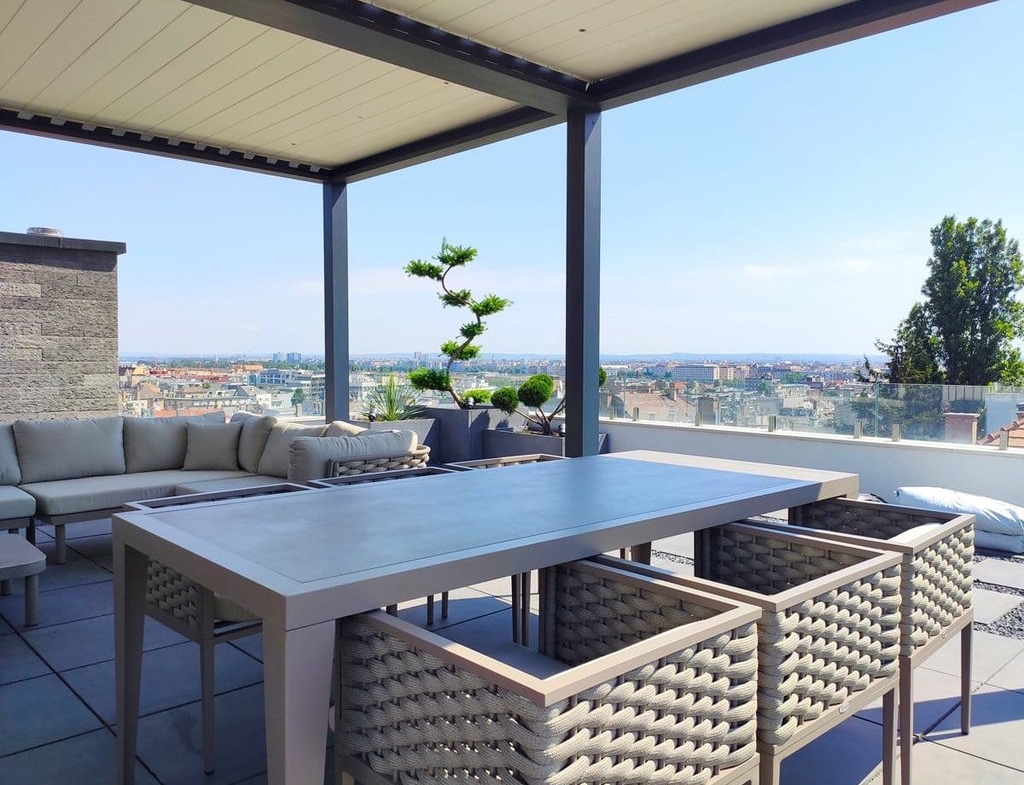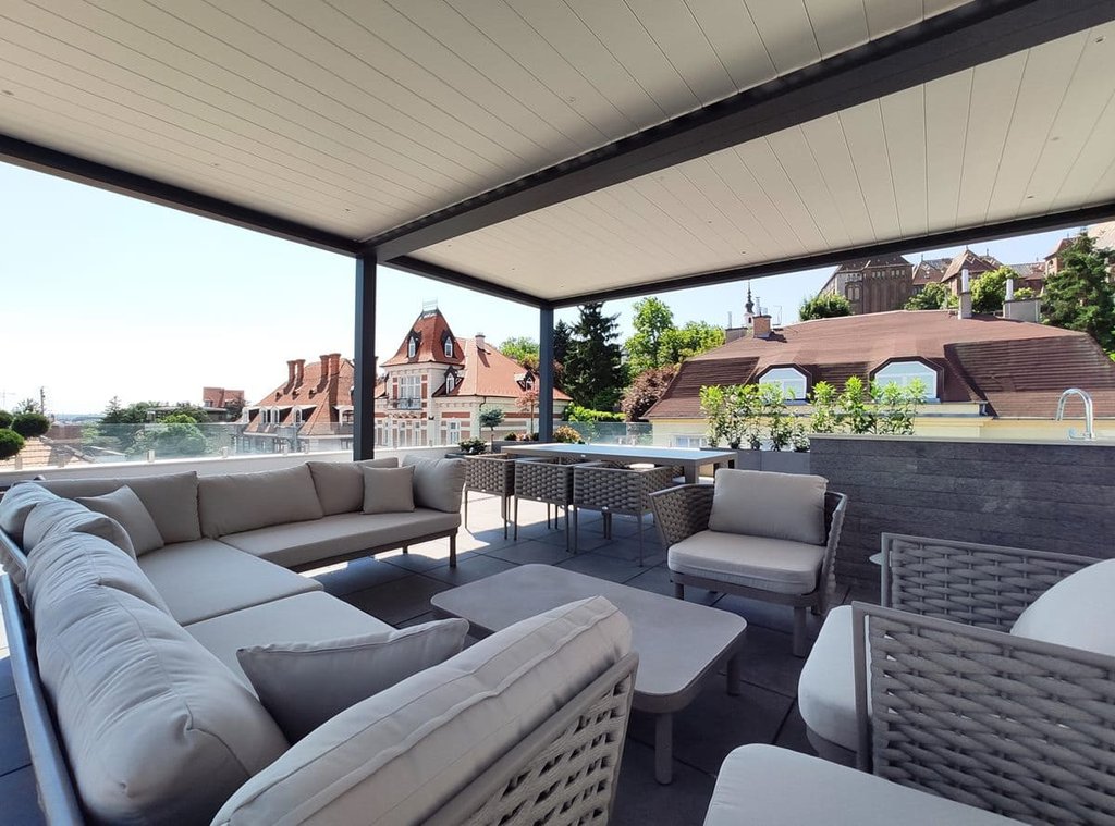 Exclusive, stunning, modern, 2-storey sqm penthouse is for rent in the beautiful 1st district with amazing panoramic view. The 145 sqm property consists of an open-style kitchen with living room, two bedroom with en-suite bathrooms, a study and a guest toilet. The rooftop terrace has a Jacuzzi, outdoor kitchen, a shower and a sauna. Extras: AC, electrical shutter, alarm system, washing machine and a dryer. Two cars can park in the underground garage. Mammut Shopping Centre can be reached within 5 minutes on foot. Metro, bus and trams stops can be found nearby.