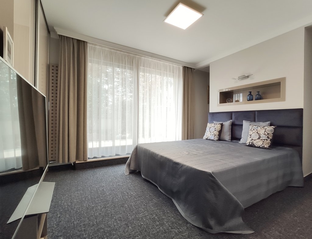 In Budapest’s 2nd district, Pasarét, is a stunning 197 sqm top-floor apartment with a 200 sqm panoramic terrace is for rent. The property is fully furnished with modern furniture, equipped with an alarm system, air conditioning, and electric blinds for extra comfort. The spacious enclosed kitchen is fitted with Miele appliances, while the living room offers ample space. There are 3 bedrooms, with the master bedroom featuring a walk-in closet and an en-suite bathroom with a bathtub and shower. Additionally, there is a second bathroom with a shower, a guest toilet, a lounge, a study, and a pantry. The terrace includes a sauna and a hot tub for added luxury. The apartment also has a fireplace, a washing machine, and a separate dryer. The location is excellent with easy access to public transportation, and there are sports facilities and restaurants nearby.
