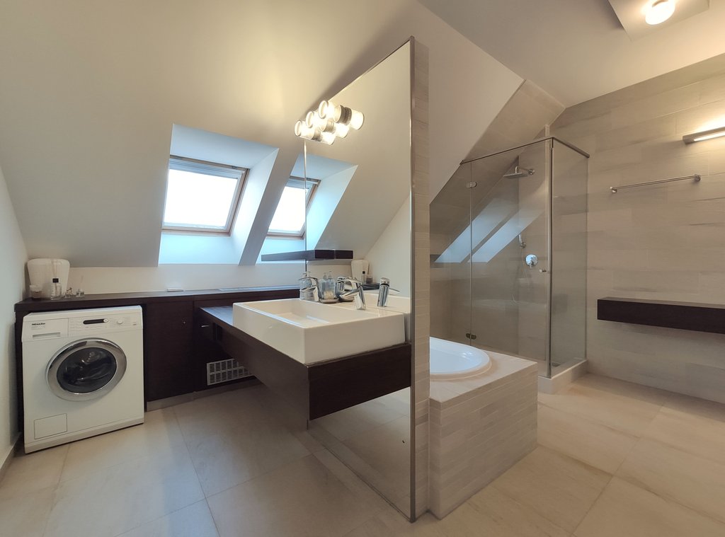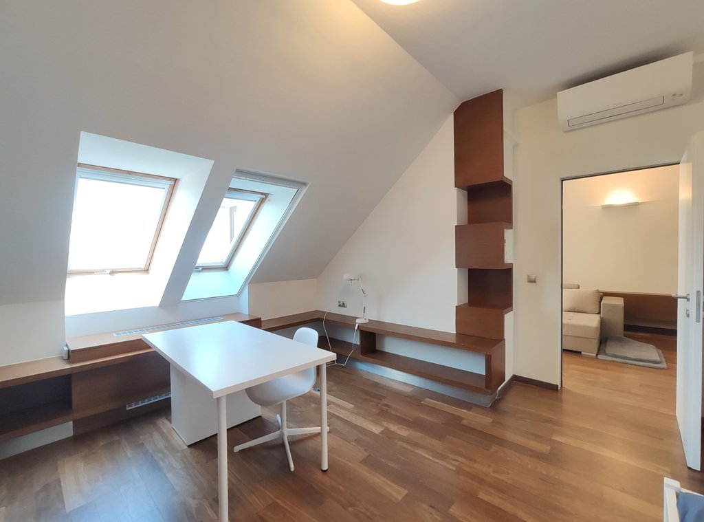 Kifejezetten tágas, részben berendezett lakás kiadó a XII. kerületben, egy modern lakópark 2. emeletén, csodaszép kilátással a környékre. A lakás 3 hálószobából (az egyik ebből tetőtéri), dolgozóból, tágas nappaliból, amerikai konyhából, étkezőből, 2 fürdőszobából (kádas és zuhanyzós) és 2 teraszból áll. A mélygarázsban 2 autó számára van beálló és tároló.