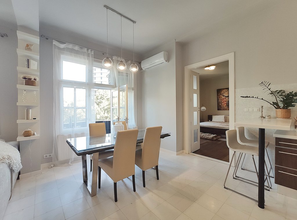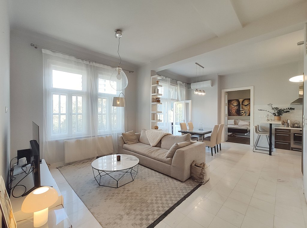 Napfényes és tágas lakás kiadó a 2.kerület egyik legszebb részén. A 2.emeleti, 77 nm-es lakás rendelkezik egy amerikai konyhás nappalival és étkezőrésszel, egy hálószobával, amelynek van gardrób és fürdőszoba (káddal és szaunával) kapcsolata is, egy vendégmosdóval, ahol igény szerint kialakítható még egy zuhanyzó és mosdó is, kamrával, valamint egy kis erkéllyel, ahonnan remek kilátás nyílik az ikonikus Körszállóra és a zöld környezetre. A lakás teljesen berendezett, légkondicionálóval felszerelt. Az épület nagyon szép állapotban, parkolás az utcán lehetséges. Kiváló választás egyedülállóknak és pároknak is, a környéken számtalan vásárlási és sportolási lehetőség áll rendelkezésre. A Mammut Bevásárlóközpont autóval vagy busszal 4-5 perc alatt elérhető.