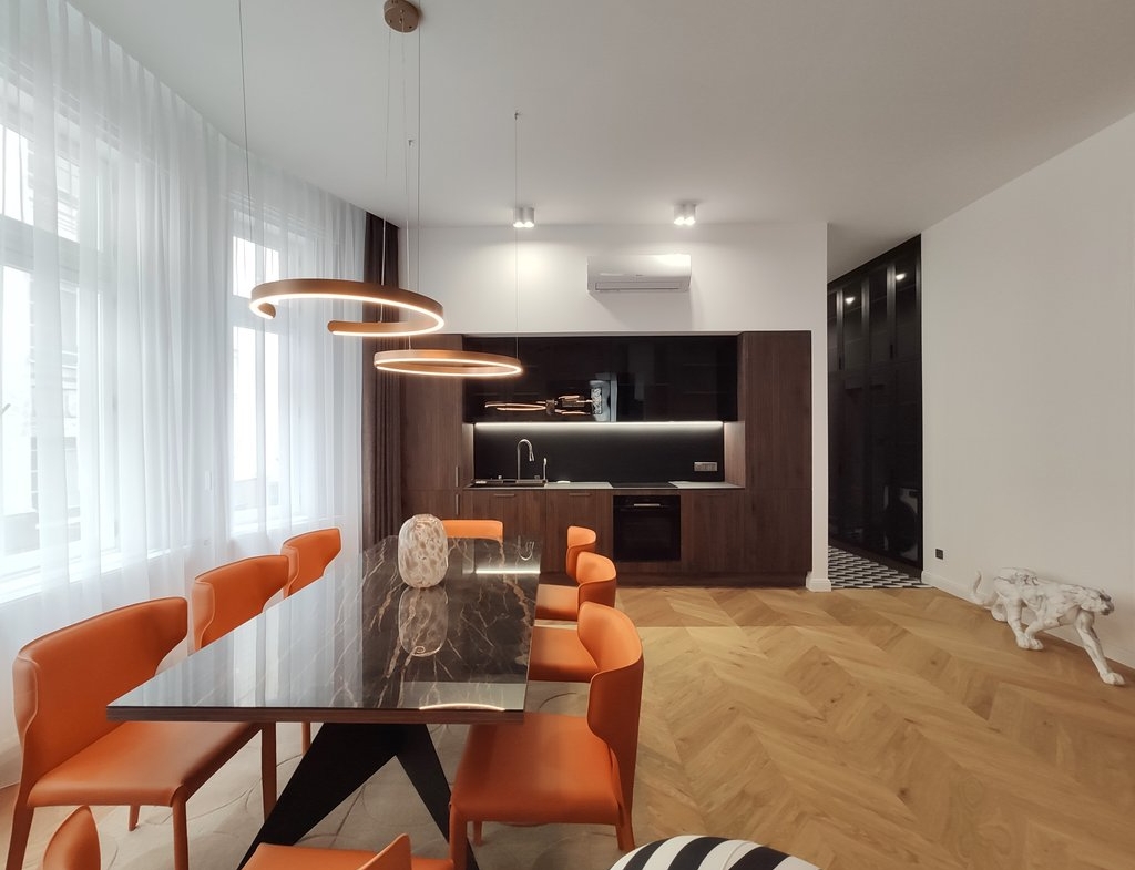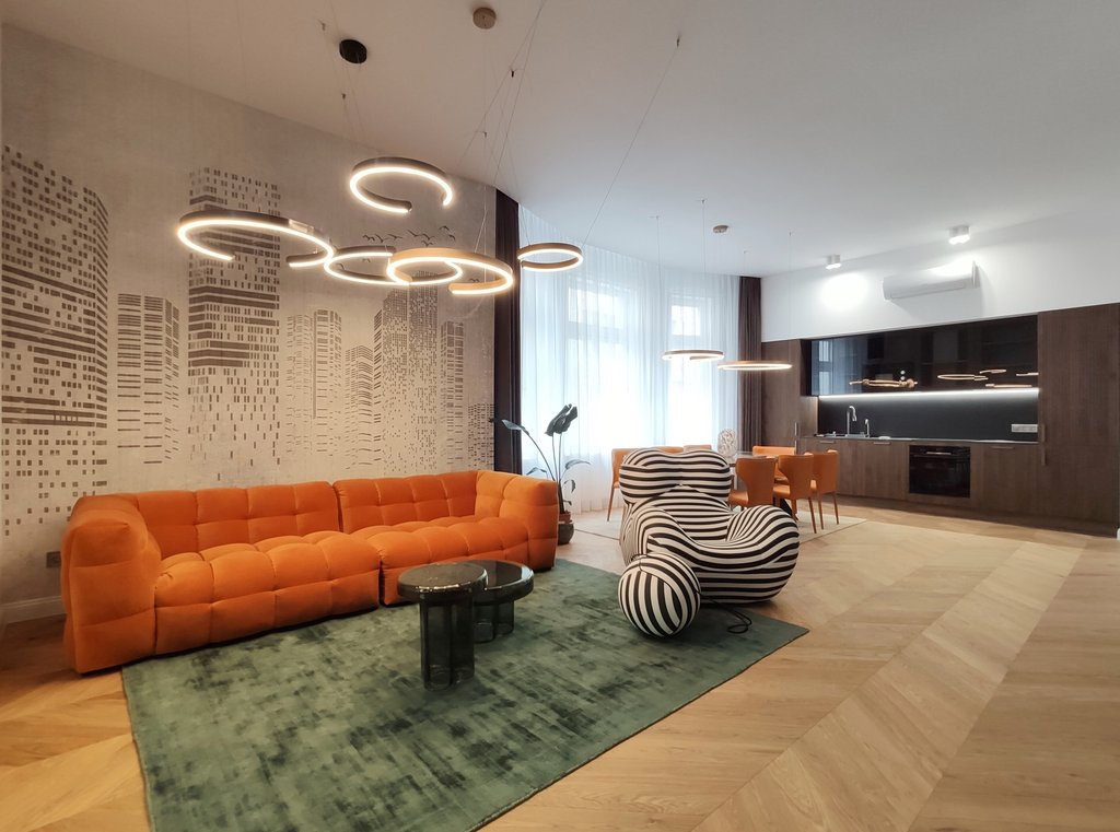 5. kerület szívében kiadó egy nagyon exkluzív, frissen felújított 100 nm-es ingatlan a történelmi Váci utcától pár lépésnyire. Az ingatlan teljesen bútorozott és magas minőségű háztartási gépekkel felszerelt. Ebben a különleges otthonban található egy amerikai konyhás nappali étkezővel, bioethanolos kandallóval, két hálószoba saját fürdőszobával, és egy vendégmosdó. Az ingatlan légkondicionált és riasztóval felszerelt. Az épület liftes. Busz és metro megálló a közelben található.