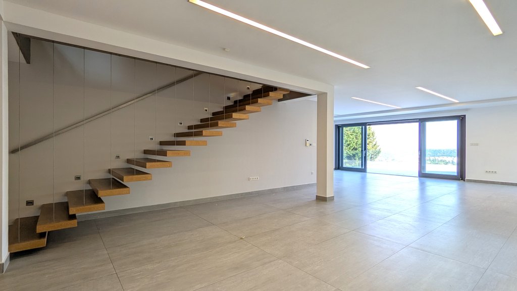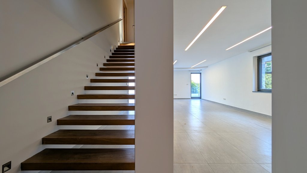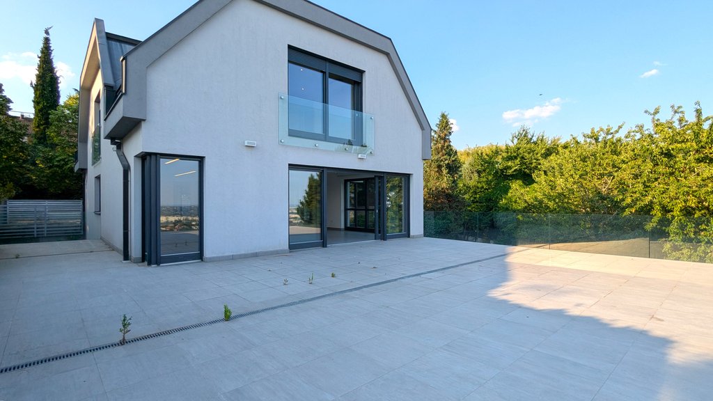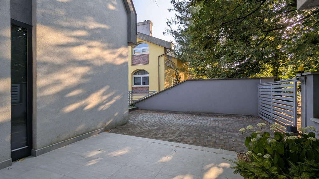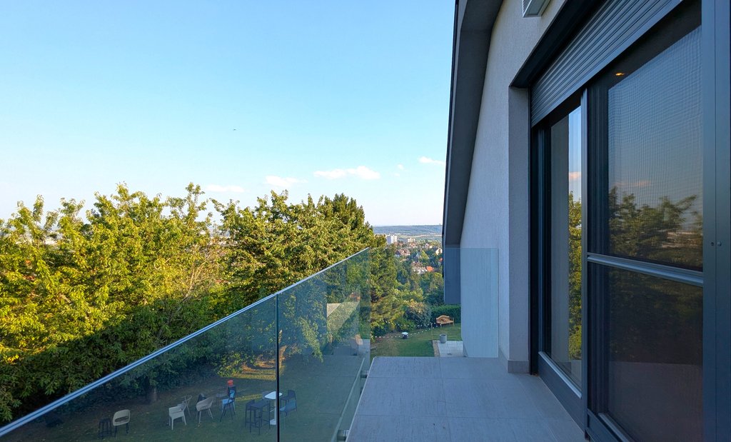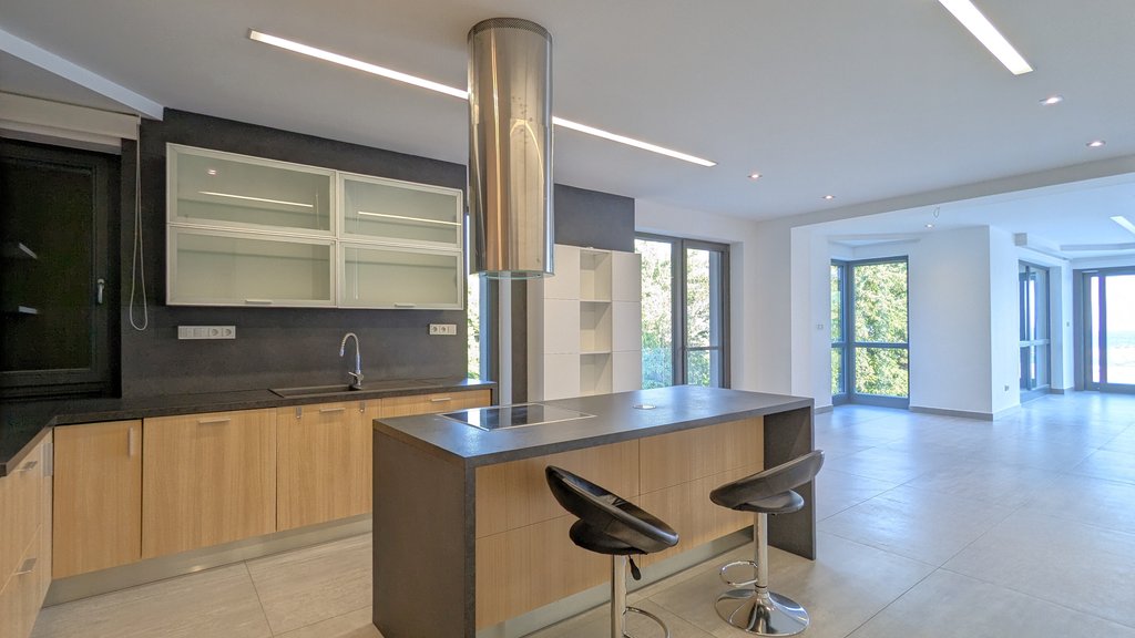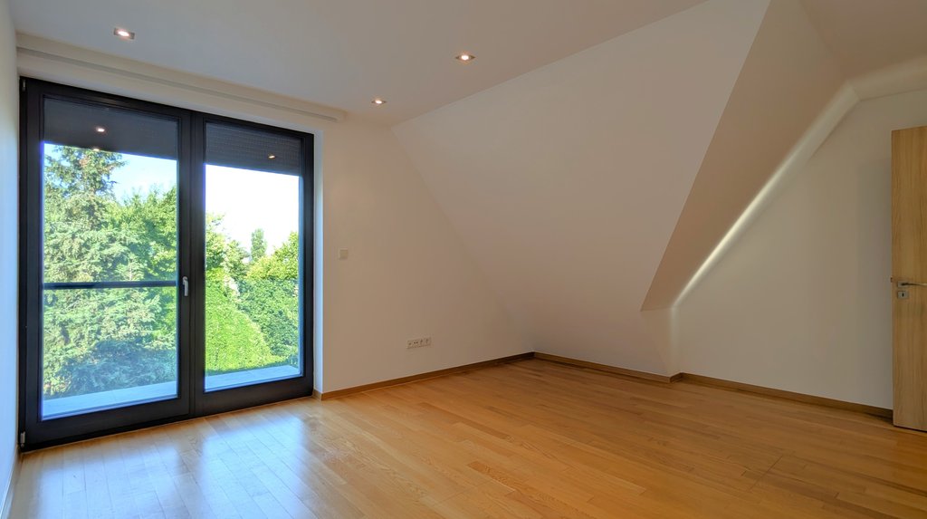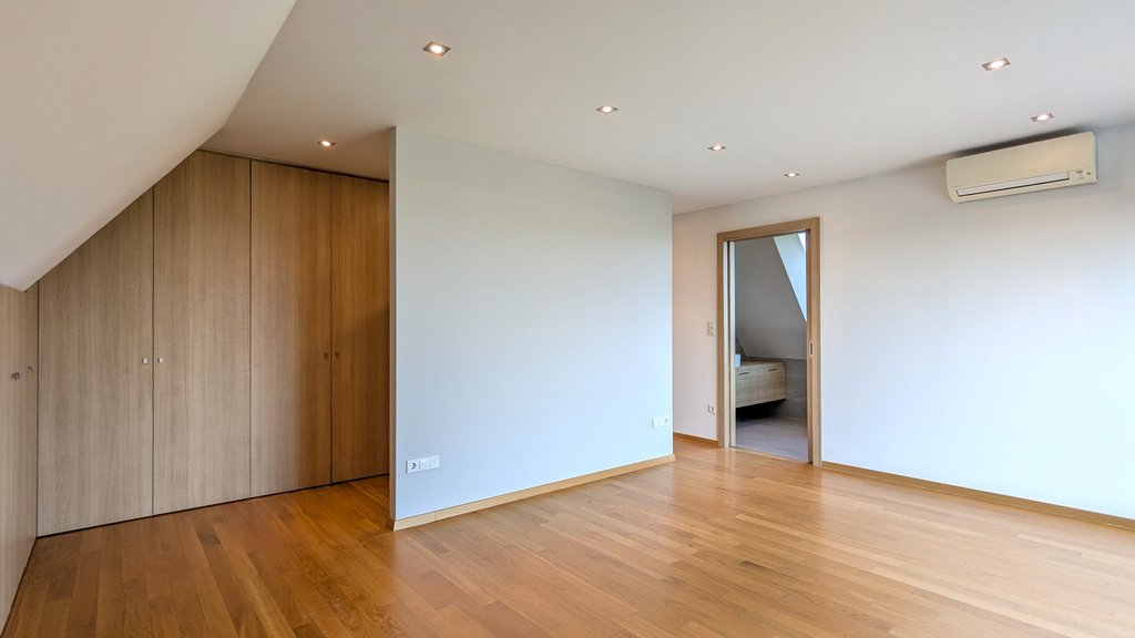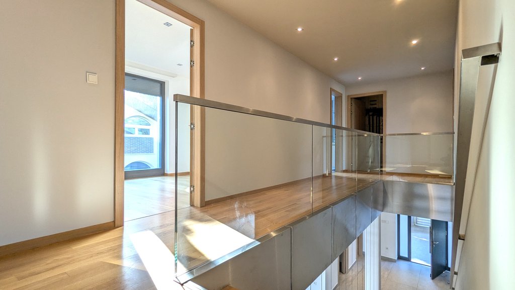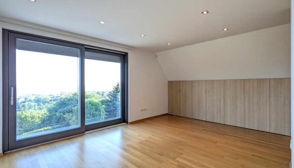 12. kerületben kiadó egy modern, minimál stílusú házban egy belső kétszintes 290 nm-es, bútorozatlan ingatlan. Az ingatlanban található egy tágas nappali, három hálószoba, egy dolgozószoba /hálószoba, két fürdőszoba (az egyik káddal, a másik zuhanyzóval), egy gardróbszoba és egy vendégmosdó. 120 nm-es teraszról szép kilátás nyílik. Mennyezet hűtés-fűtés, külön klíma van a szobákban. Egy garázs és egy beálló tartozik a lakáshoz. Az ingatlan riasztóval és redőnyökkel felszerelt.