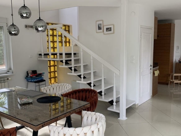 A lakóház alapterülete 170 négyzetméter, amely egy 7 és egy 10,5 négyzetméteres földszinti terasszal, egy 48 négyzetméteres tetőterasszal, és egy 3,6 négyzetméteres erkéllyel egészül ki. A pince részen található a két beállós privát garázs, valamit a mosókonyha/ tároló rész, ahol egy mosógép, szárítógép, és egy extra hűtő is található. A szellősen átjárható földszint, egy konyhára, spejzre, étkezőre, nappalira, és egy WC-re oszlik. A nappali/étkező részből könnyedén kiülhetünk a teraszra is.Az emeleten található a fürdőszoba, valamint a folyosó két végében 2-2 hálószoba is, amelyből az egyik egy kis erkéllyel is rendelkezik. Egy szinttel feljebb pedig egy hatalmas tetőterasz található, pazar kilátással a környező hegyekre.