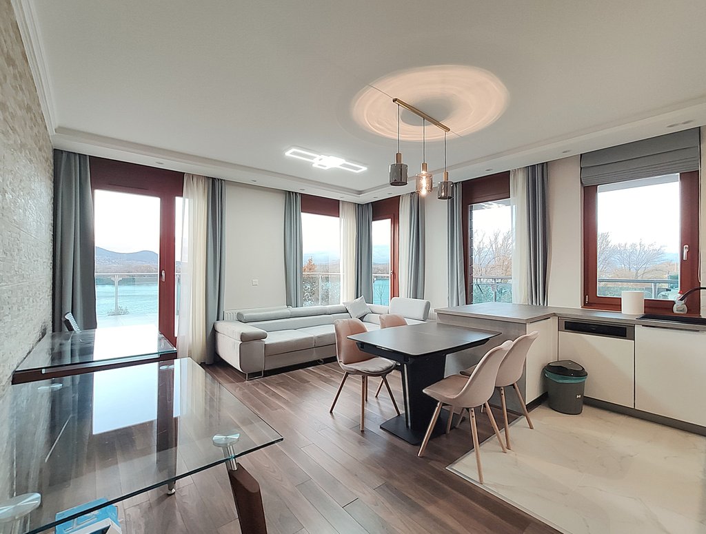 13. kerületben a Marina parton kiadó egy szépen felújított, 70 nm-es, 3. emeleti lakás. Az ingatlanban található két hálószoba, egy Amerikai konyhás nappali, egy fürdőszoba káddal és zuhanyzóval és egy vendég WC. Az 50 nm-es teraszról gyönyörű kilátás nyílik a Dunára és a budai hegyekre. A teremgarázsban lehet egy parkolóhelyet bérelni, melynek ára 35 000 HUF. Az ingatlan gépesített, teljesen bútorozott és légkondiconálással felszerelt. Az épület liftes.