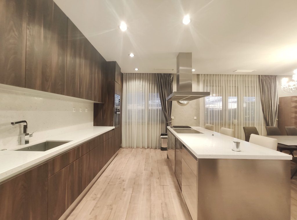 Hosszútávú bérbeadásra kínáljuk ezt a kivételes penthouse lakást a SIDI Angel Rezidenciában, Budapest 13. kerületében. A 80 nm-es tetőteraszról lélegzetelállító panorámás kilátás nyílik a városra és a budai hegyekre. A legmagasabb színvonalon tervezett és kivitelezett lakás tágas nappalival, három hálószobával és két elegáns fürdőszobával rendelkezik, így a luxus, a kényelem és a funkcionalitás tökéletes kombinációját nyújtja. A prémium felszereltséghez tartozik a csúcskategóriás MIELE konyhai gépek, padlófűtés, biztonsági riasztórendszer, elektromos alumínium redőnyök, motoros fényszűrő és dekoratív függönyök, valamint a tetőterasz terasz, amely egész évben teljesen zárható. Ez az exkluzív otthon ideális választás lehet, akik szeretik a minőséget, panoráma kilátást és a nagy tetőteraszokat.