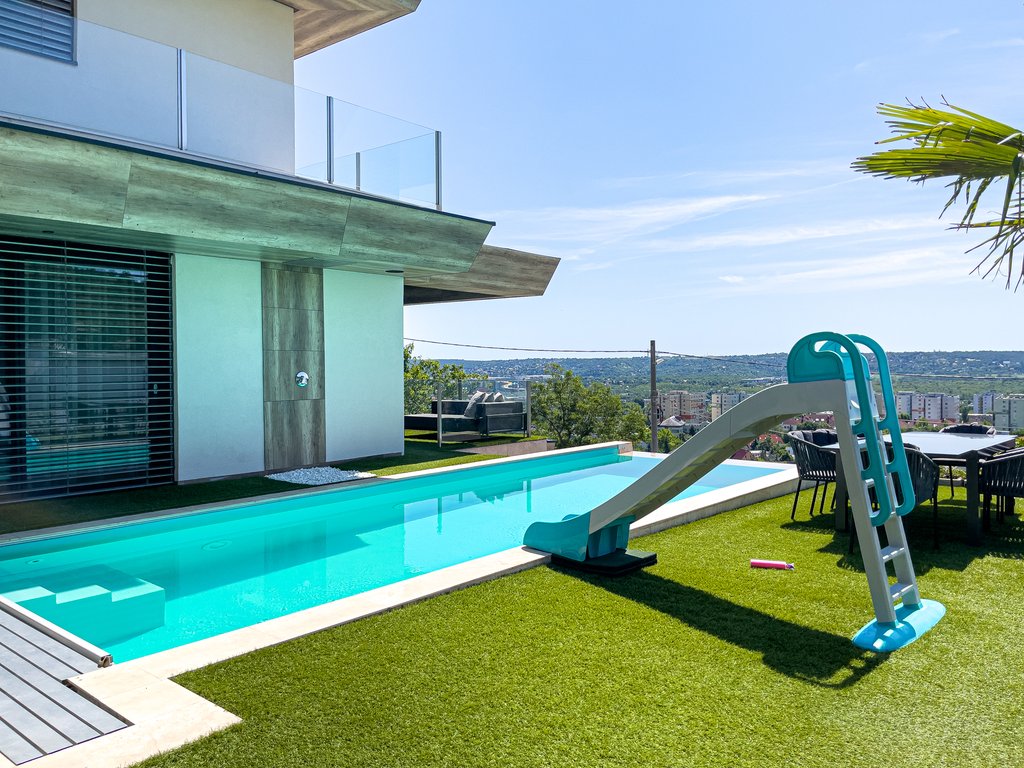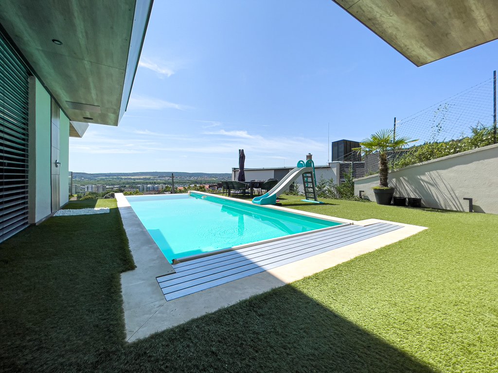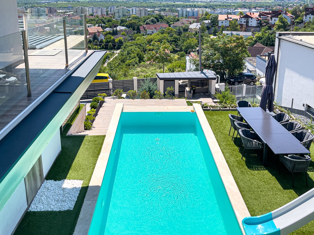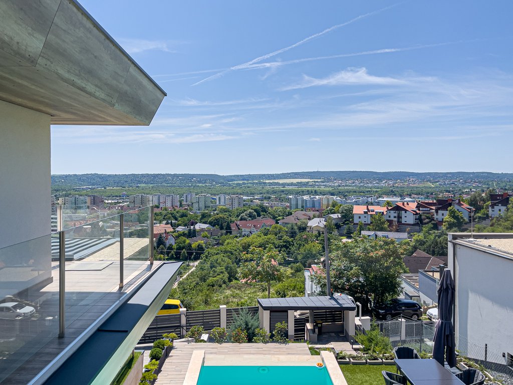 Budaörsön kiadó egy páratlan luxusház, medencével, lélegzetelállító panoráma kilátással! A három szintes, 300 nm-es ingatlanban található 4 hálószoba, 3 fürdőszoba, egy tágas amerikai konyhás nappali étkezővel, egy vendégmosdó, egy wellness részleg felszerelt edzőteremmel, himalájai sófallal, szaunáal. Szépen gondozott kertben egy játszótér, egy fantasztikus kültéri medence, kültéri konyha is található. A garázsban két autó számára van parkolási lehetőség, továbbá négy kültéri parkolóhely is tartozik az ingatlanhoz. Az ingatlan januártól elérhető.