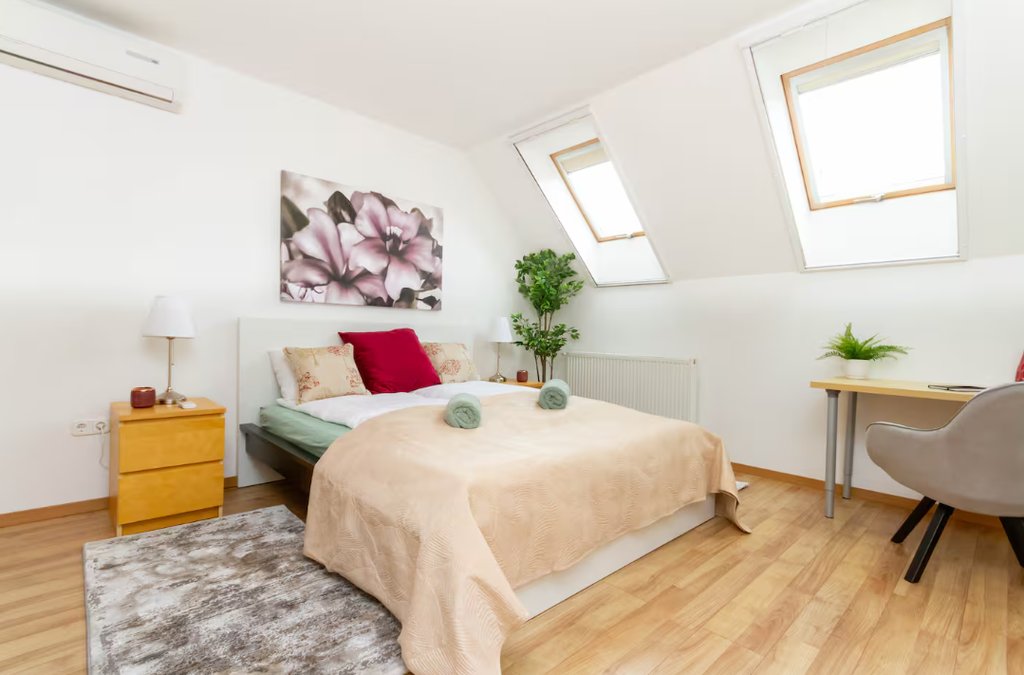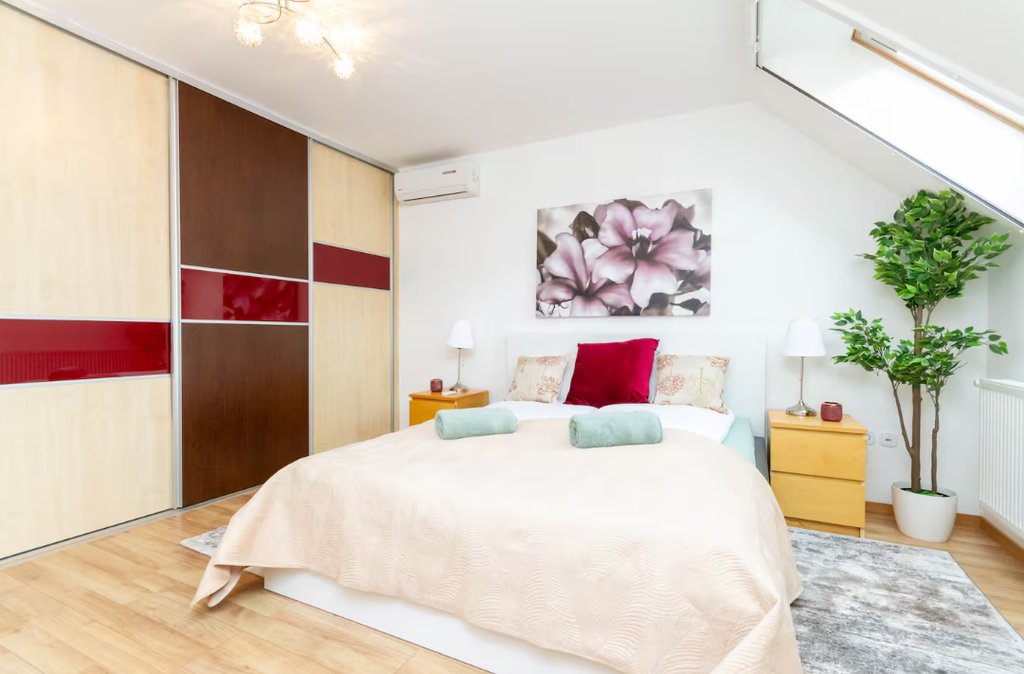 Budapest belvárosának szívében, a 6. kerület egyik hangulatos utcájában kínáljuk bérlésre ezt a különleges, negyedik emeleti, belső kétszintes otthont, tágas tereivel és modern felszereltségéve. A három külön nyíló hálószoba és a kádas fürdőszoba ideális választássá teszi akár családok, akár együtt költöző barátok számára, míg a teljesen berendezett nappali és a minden szükséges eszközzel felszerelt konyha gondtalan mindennapokat ígér. A 8 nm-es erkély csendes, pihentető helyszín egy reggeli kávéhoz vagy egy esti beszélgetéshez, a lakás extra felszereltsége – klíma, riasztórendszer, valamint a házban található lift – pedig tovább növeli a komfortérzetet. A környék kiemelkedően élhető és sokszínű: néhány perc sétára találhatók a város kulturális központjai, színházak, kávézók, éttermek és kisebb üzletek, miközben kiváló a közlekedés is, legyen szó metró-, villamos- vagy buszjáratokról.