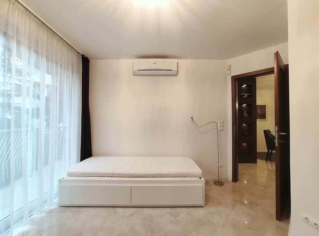 Kiadó a XII. kerületben, Kissvábhegy egyik csendes, zöldövezeti utcájában egy első emeleti, 90 nm-es, igényesen felújított lakás. Az ingatlan amerikai konyhás nappalival és étkezővel, 2 külön nyíló hálószobával, gardróbbal, valamint 2 fürdőszobával rendelkezik, melyek közül az egyik káddal, a másik zuhanyzóval felszerelt. A lakáshoz terasz és kertkapcsolat is tartozik, ahonnan szép kilátás nyílik a környékre. A lakás teljes bútorzattal kiadó, gépesített konyhával, légkondicionálóval, padlófűtéssel és elektromos redőnyökkel felszerelt. Az ár tartalmaz egy különálló garázst is. Kissvábhegy a XII. kerület egyik legkedveltebb része, nyugodt, zöld környezetet kínál, mégis könnyen megközelíthető, kiváló infrastruktúrával és jó közlekedéssel. Ideális választás pároknak, kisebb családnak vagy akár expatoknak is, akik exkluzív, kényelmes és jól felszerelt otthont keresnek hosszú távra.