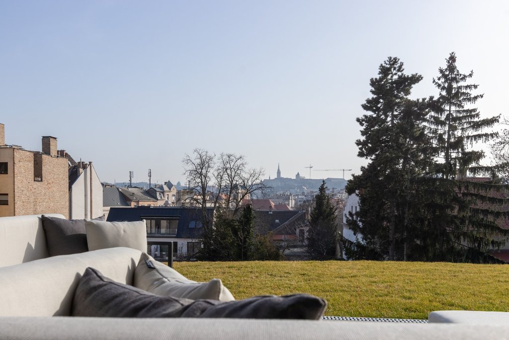 Kiadó exkluzív, 250 nm-es földszinti luxuslakás Budapest egyik legelőkelőbb városrészében, a Rózsadomb szívében. A 2020-ban épült, modern, liftes társasházban elhelyezkedő ingatlan minden részletében a prémium minőséget és a kifinomult eleganciát képviseli. A lakás teljes bútorzattal, magas kategóriás berendezésekkel és csúcstechnológiás műszaki tartalommal kiadó; a mennyezeti hűtés és a padlófűtés egész évben tökéletes komfortot biztosít, az elektromos redőnyök és a korszerű elektronikai rendszerek pedig a 21. századi igényekhez igazodnak. A tágas, 90 nm-es amerikai konyhás nappali és étkező a lakás központi élettere, amely impozáns méreteivel és letisztult designjával ideális reprezentatív fogadásokhoz és családi együttlétekhez egyaránt, a nagy teraszról és a saját kertből pedig lélegzetelállító panoráma nyílik a Budai Várra. Két nagyméretű hálószoba saját fürdőszobával és gardróbbal garantálja az intim, zavartalan pihenést, továbbá egy kisebb hálószoba is rendelkezésre áll vendég- vagy dolgozószobának; a szauna, a vendégmosdó és a külön háztartási helyiség tovább emeli az ingatlan kényelmi szintjét. A lakáshoz két gépkocsibeálló tartozik a liftes mélygarázsban, valamint egy önálló tároló is biztosított. A környék a főváros egyik legkeresettebb, zöldövezeti része, ahol a csendes, elegáns utcák, a kiváló infrastruktúra, a nemzetközi iskolák és a belváros gyors megközelíthetősége páratlan életminőséget kínálnak; a Rózsadomb presztízse, panorámája és nyugalma tökéletes választás mindazok számára, akik kompromisszummentes luxusra és diszkrét, magas színvonalú otthonra vágynak.