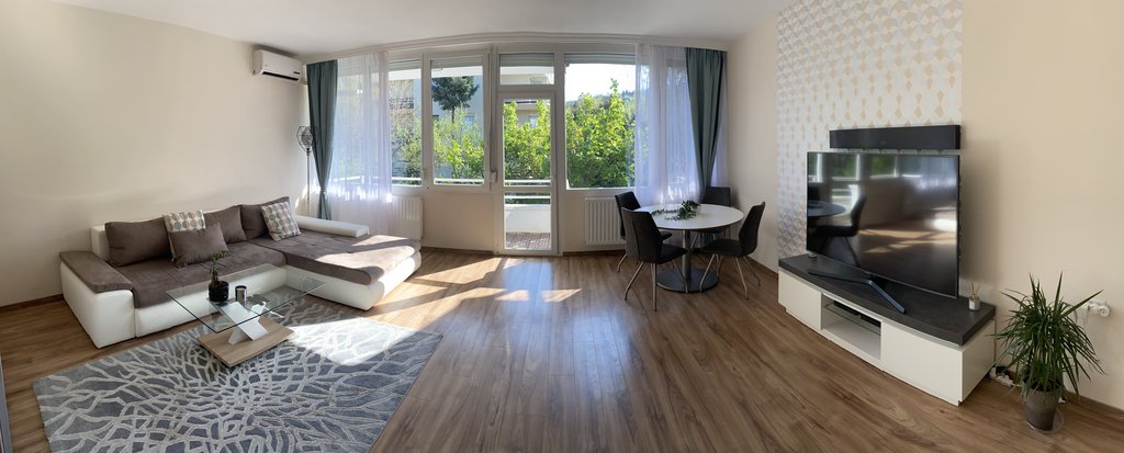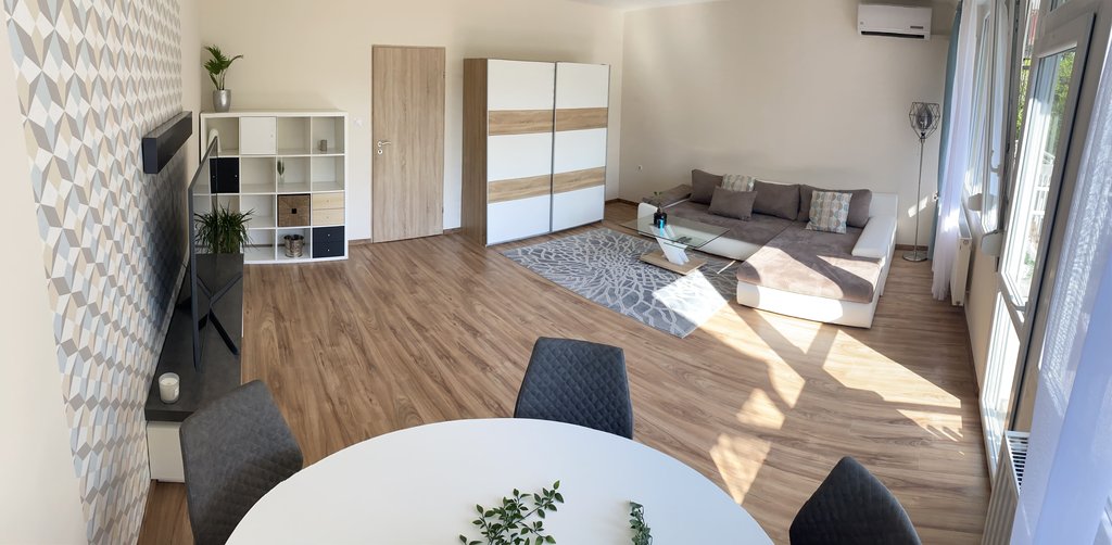 Kiadásra kínálunk a XII. kerületben egy világos, napfényes, 58 m² alapterületű (+6 m²-es terasszal rendelkező), felújított, téglaépítésű lakást nyugodt, zöldövezeti környezetben. Az első emeleti, teraszos ingatlan elrendezése: tágas nappali, előtér/közlekedő, különálló konyha, hálószoba, valamint WC-vel egybeépített fürdőszoba. A lakás megkímélt, szinte újszerű állapotban van; déli tájolásának köszönhetően különösen világos, a nappali teraszkapcsolatos és légkondicionálóval felszerelt, a hálószoba pedig kényelmes méretű. A fűtés egyedileg szabályozható. A fürdőszobában mosógép található. Az ingatlanhoz tartozik továbbá egy autó számára biztosított parkolóhely a házhoz tartozó zárt beállón, valamint egy körülbelül 2 m²-es pincehelyiség tárolás céljára.