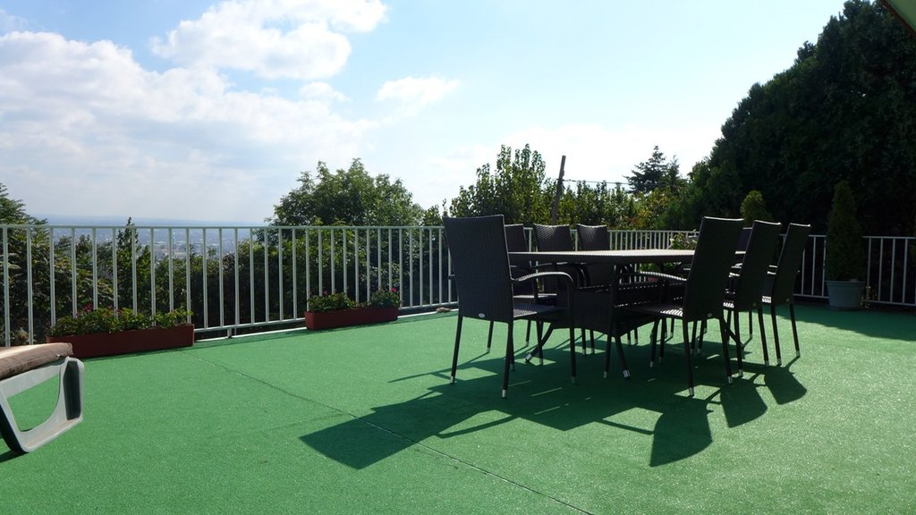 XII. kerület csendes részén földszinti, 200 nm-es csodaszép panorámájú lakás 60 nm-es hatalmas terasszal, bútorozottan vagy üresen kiadó. A lakásban stílusosan berendezett amerikai konyhás nappaliján kívül 4 hálószoba és 2 fürdőszoba is kialakításra került. Ezenkívül sok extrával rendelkezik: közös használatú medence és teniszpálya és szauna. A lakáshoz egy parkolóhely is tartozik.